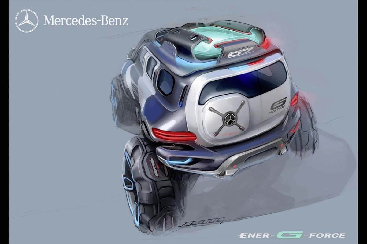 “The Ener-G-Force is the vision of an off-roader that, while reflecting tomorrow’s adventures, also invokes the genes of the Mercedes-Benz off-road icon, the G model,” explained Gorden Wagener, Director of Design at Mercedes-Benz Cars. “Modern and cool, it could also be a clue about a new beginning for the off-road design idiom of Mercedes-Benz.”