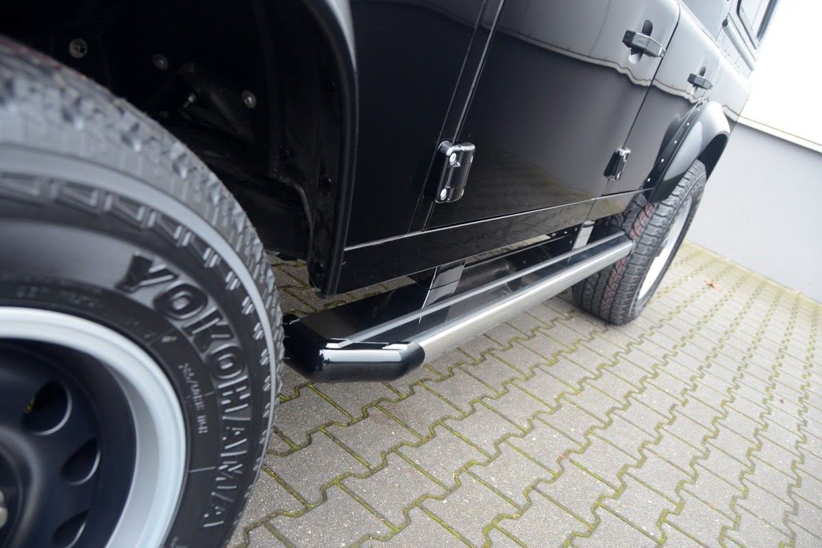 The German company’s designers applied the Series III’s iconic styling cues with a modern twist on the Defender through a raft of components starting with the new fascia featuring the classic grille complete with two round 7-inch LED headlights. The smaller upper lamps on either side work as daytime running lights, while the turn signals just below them also feature LED technology.