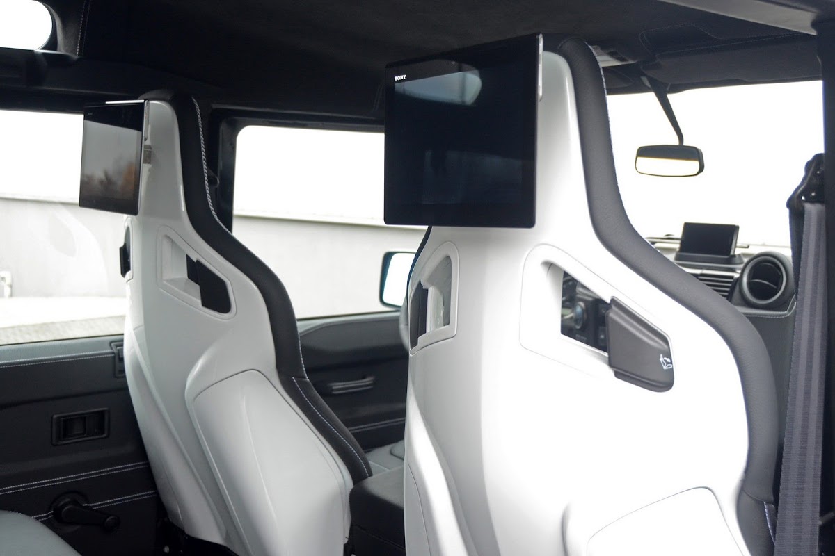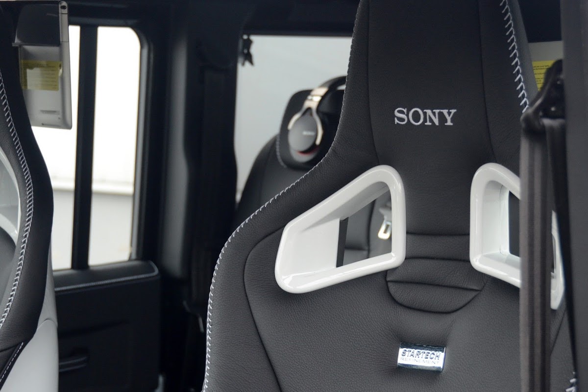 For the rear passengers’ entertainment, Startech fitted the Defender concept with two Sony tablet computers mounted on the seat back shells.