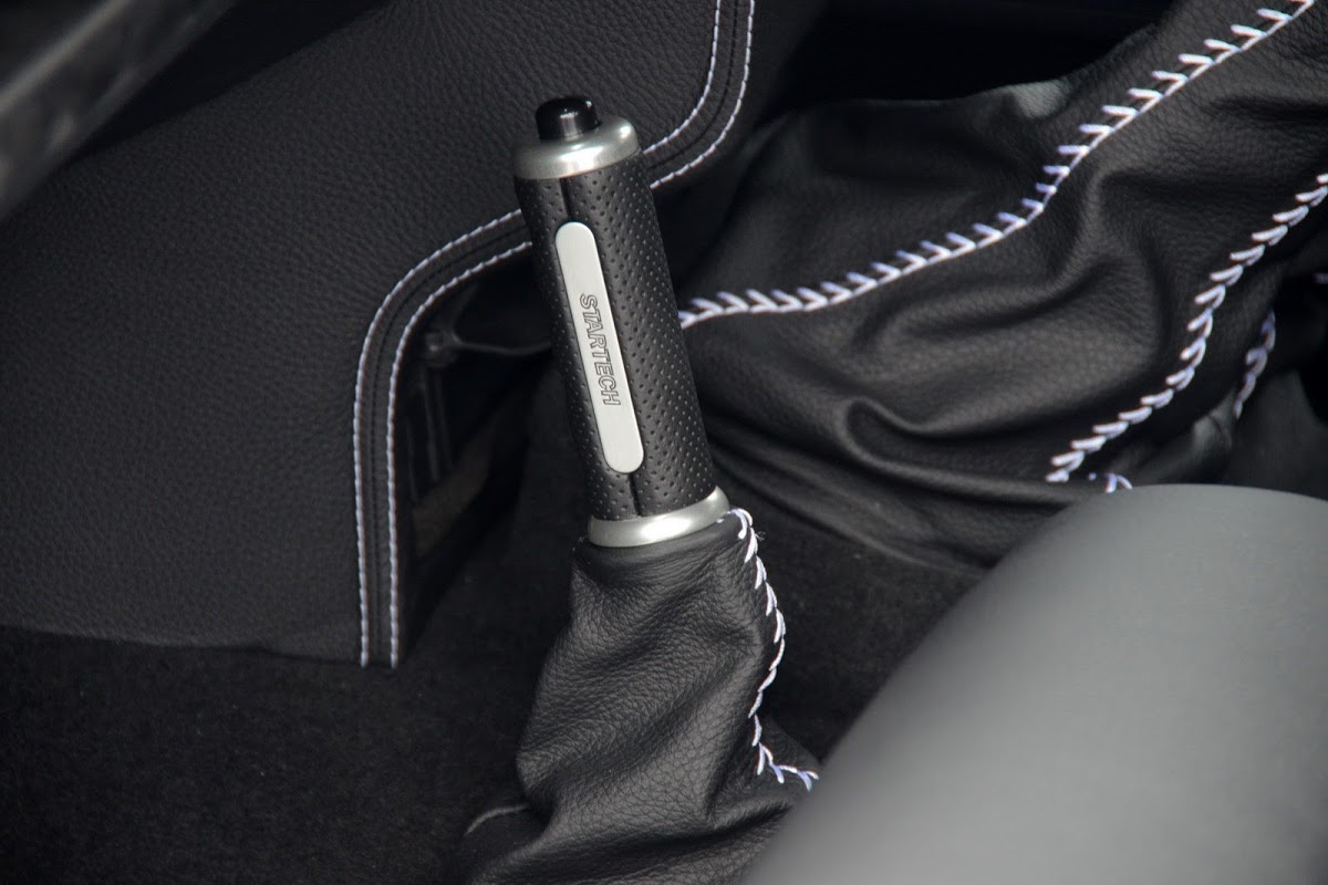 Inside, the tuner abandoned the vintage look and opted for additional luxury amenities such as the soft black leather white decorative seams covering the sport Recaro seats whose back shells are painted white, dashboard, door panels, steering wheel and gear shift levers.