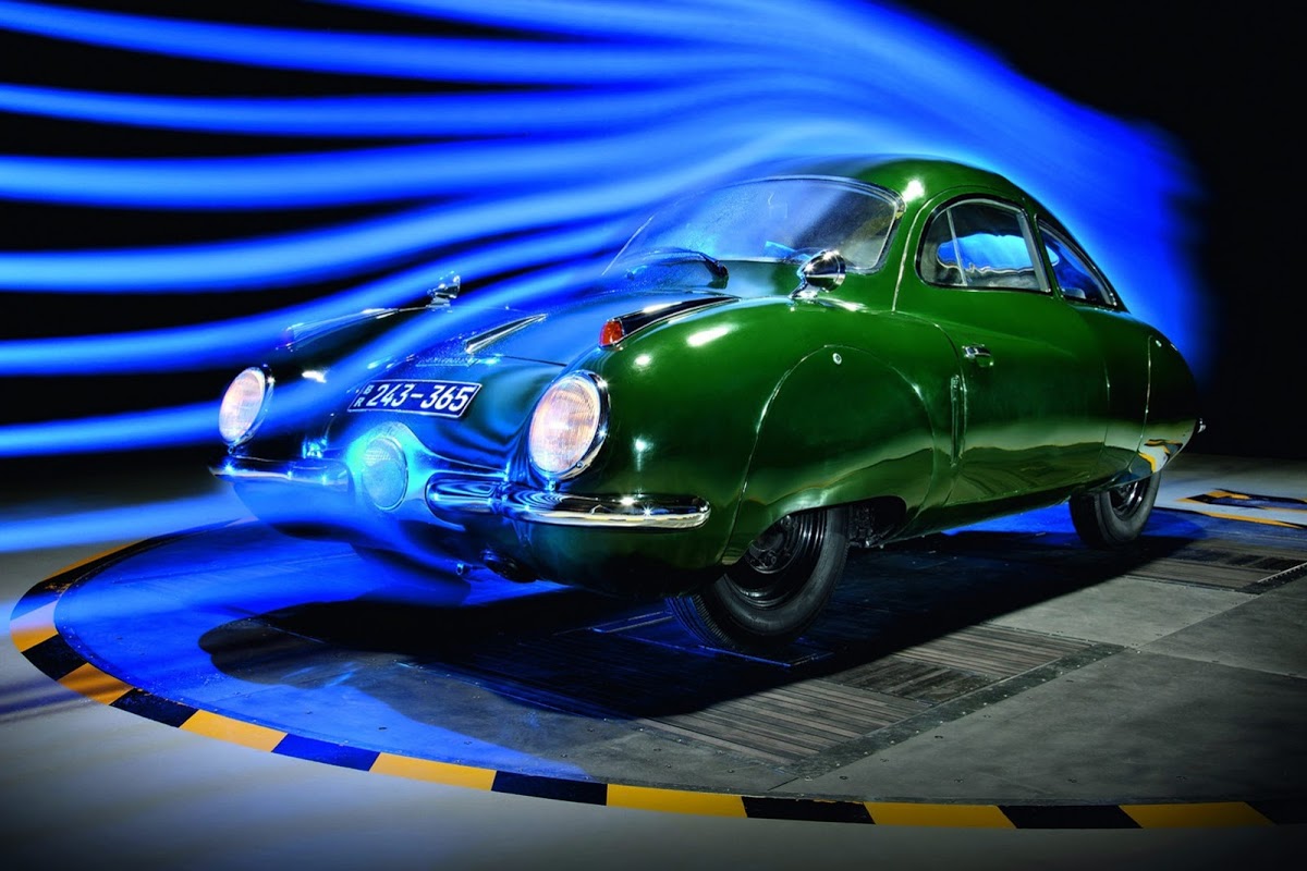 Because of the war, only one example of the V2 Sagitta was built in 1947. For a while, Volkswagen thought the car had disappeared, but recently found it in Austria and brought it over to Wolfsburg in January 2013 to test it in its wind tunnel. VW wanted to see how the V2 Sagitta stands up to today’s cars. The results were amazing. It turns out that the V2 Sagitta has a drag coefficient (Cd) of 0.217 corresponding to a frontal area of 2.10 square meters.