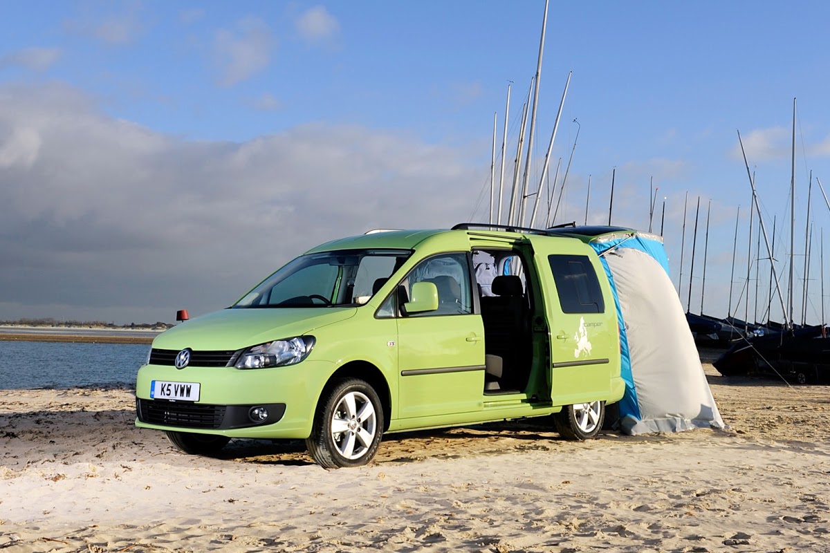 Volkswagen has launched the new Caddy Maxi Camper in the UK, the most compact and affordable model in the carmaker’s camper range behind the California Beach and SE models, and the Caravelle with “sleep pack”.