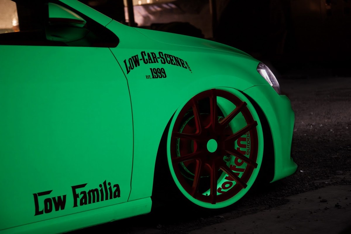 It’s not hard to see why this VW Golf VII from German tuners “Low-Car-Scene” and “Blackbox-Richter” has all the makings of being a smashing hit at an underground party with some fist punching techno rhythms.