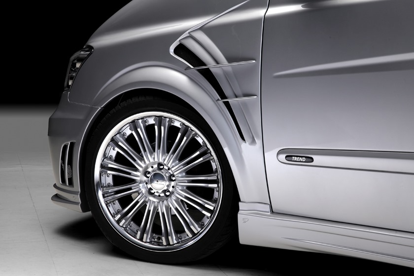 Judging by these pictures, the Japanese tuner did its best to offer the minivan a more dynamic and racier look with its aero package that’s available for both the pre- and facelift versions of the Viano. The kit includes a new front bumper with a lip spoiler and LED daytime running lights, front fender vents, side skirts, a rear bumper with an integrated diffuser and dual exhaust pipes, and a roof spoiler.