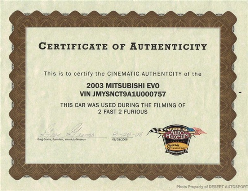 The car is a genuine Evo, unlike most of the cars used on the set that were regular Lancers, and it has only done 844 miles since new, so it;s basically new and fully drivable. Even better, it has no performance modifications to speak of, so one could buy it and enjoy the reliability of a stock car, or go crazy with it and make it go as fast as the movie says it should.