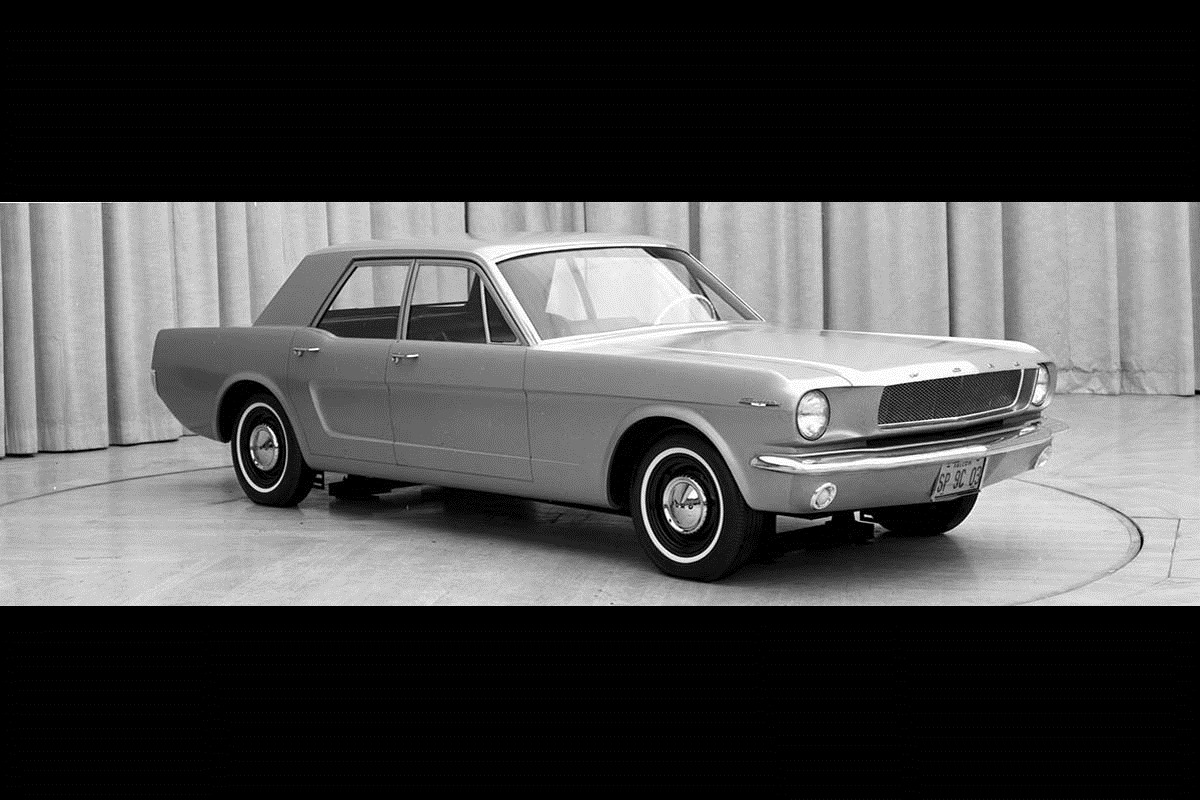 The success of the first-generation Mustang made Ford execs think about new body-styles to gain even more customers. As the Mustang was based on the Falcon sedan, the idea to add two doors to the pony car was inevitable. Fortunately, the design didn’t get approved and the Mustang legend was not diluted.