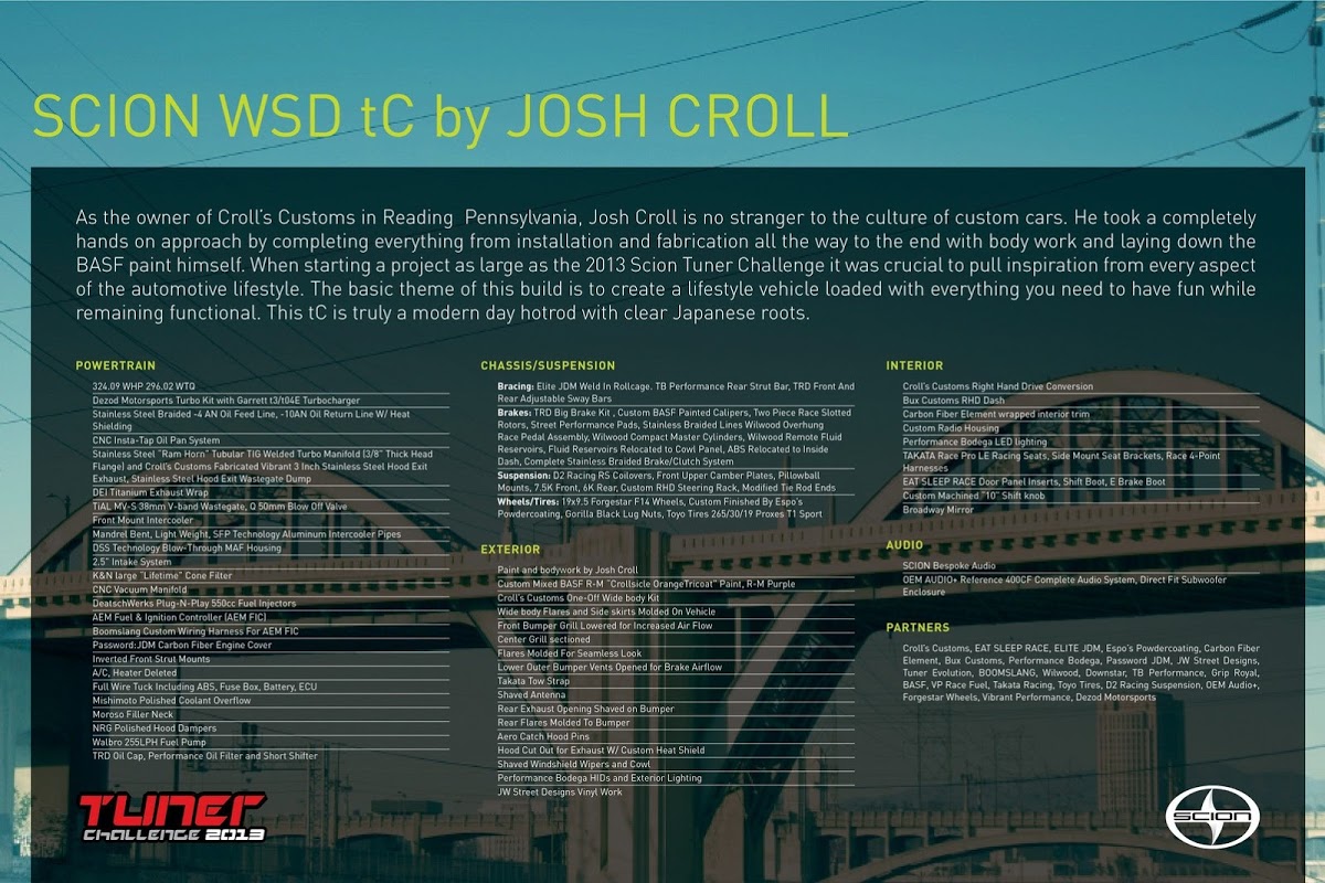 “This tC is a modern day hot rod with clear Japanese roots,” Croll said. “It has the uniqueness, style and power to win this competition.”