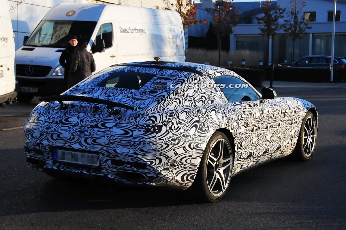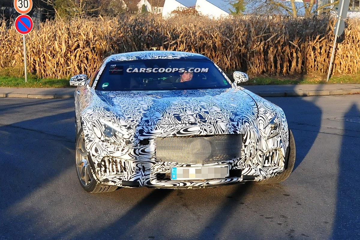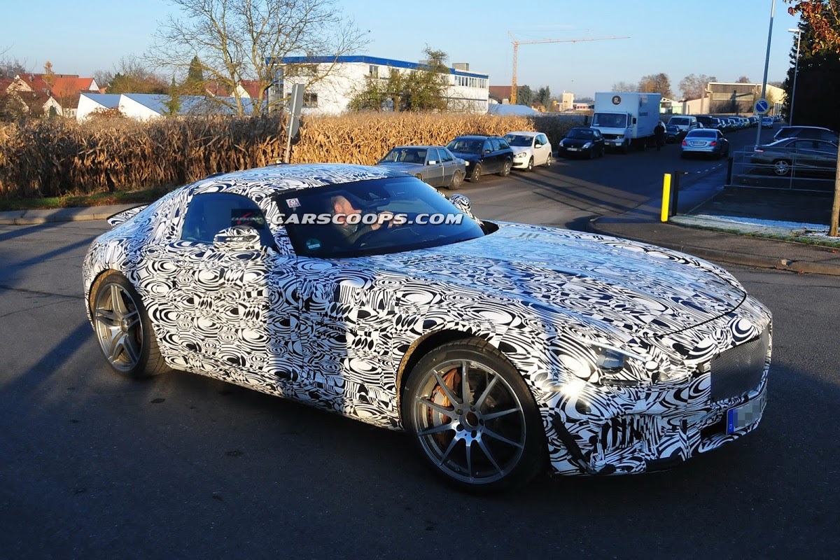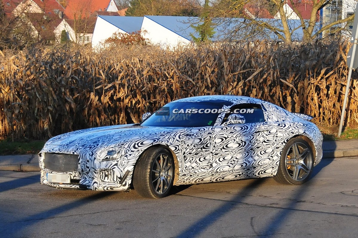 Believed to utilize a shorter and modified version of the SLS’ still fresh aluminum spaceframe architecture, the SLC will carry a new 4.0-liter twin-turbocharged V8 instead of the naturally aspirated 6.2-liter V8 found under the bonnet of the Gullwing model.