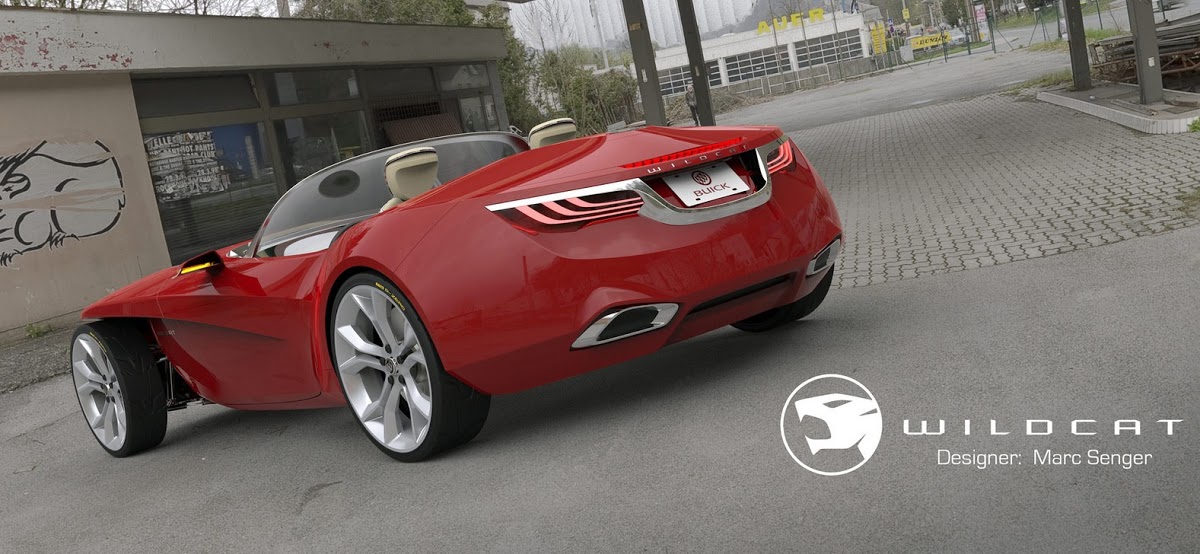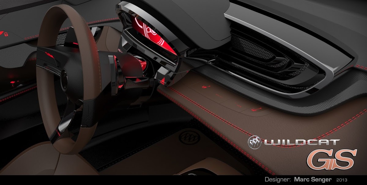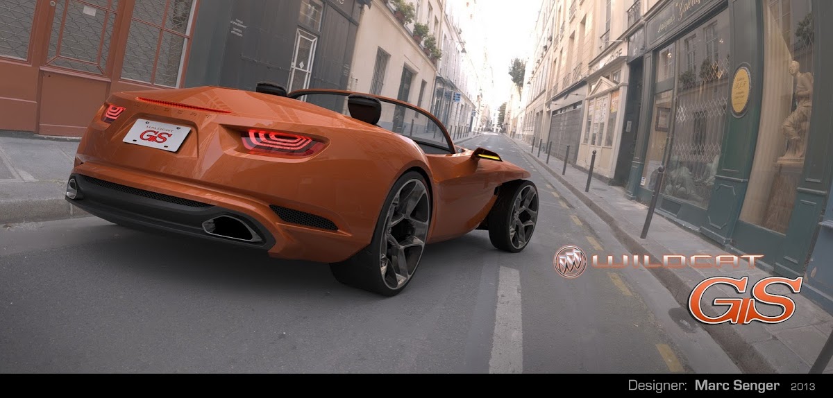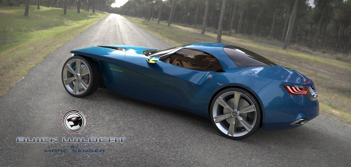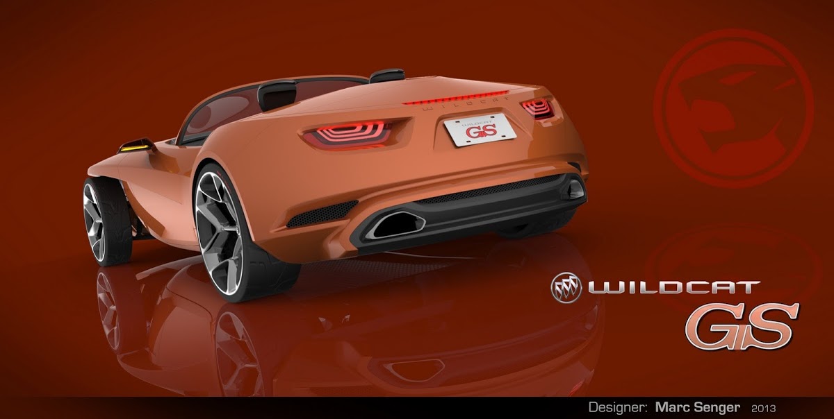 Senger sent us his work on the Buick Wildcat design study, which is named after and inspired by Buick’s renowned fiberglass-bodied 1954 concept car. It’s a two-seater roadster envisioned with a supercharged V8 engine (we gather in its top form) to compete against the likes of the BMW Z4 and Jaguar F-Type.