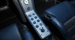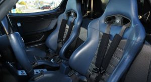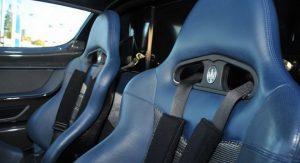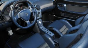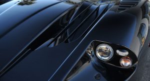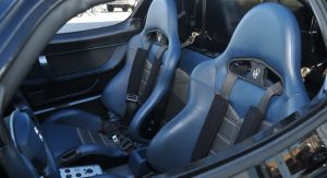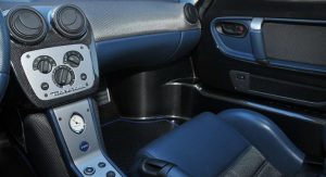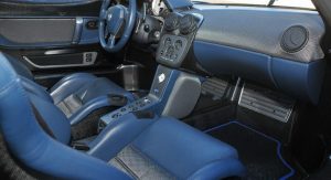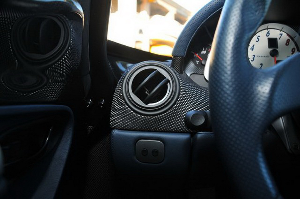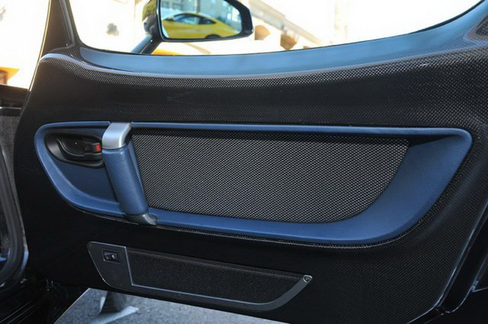 The interior is still blue-themed, just like all the other 50 road cars built, and it looks really nice too set alongside the black exterior finish, with the removable roof panel taken off and sunlight seeping in.