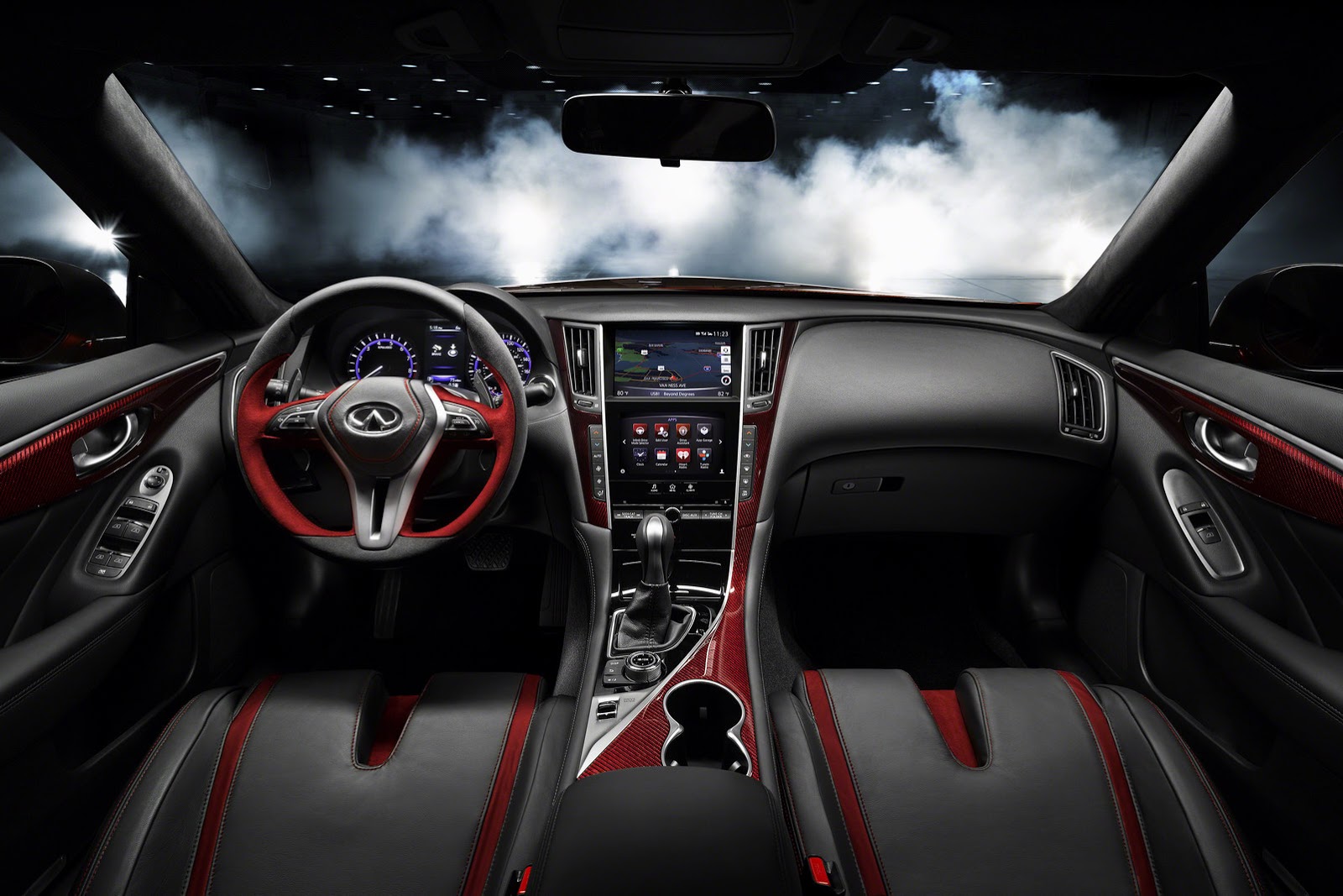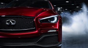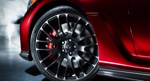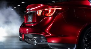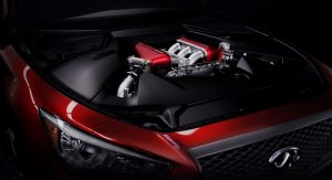 At the recent Geneva Motor Show, Infiniti confirmed the Q50 Eau Rouge study’s Nissan GT-R-sourced twin-turbo 3.8-liter V6 with 568PS (560hp) and 600Nm (592 lb-ft) paired to a full-time, all-wheel drive system with 50/50 front-to-rear torque split and a 7-speed transmission.