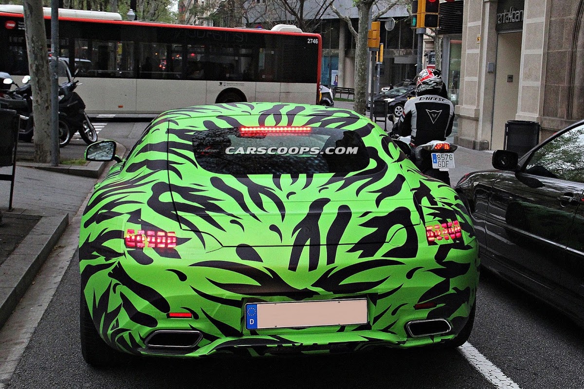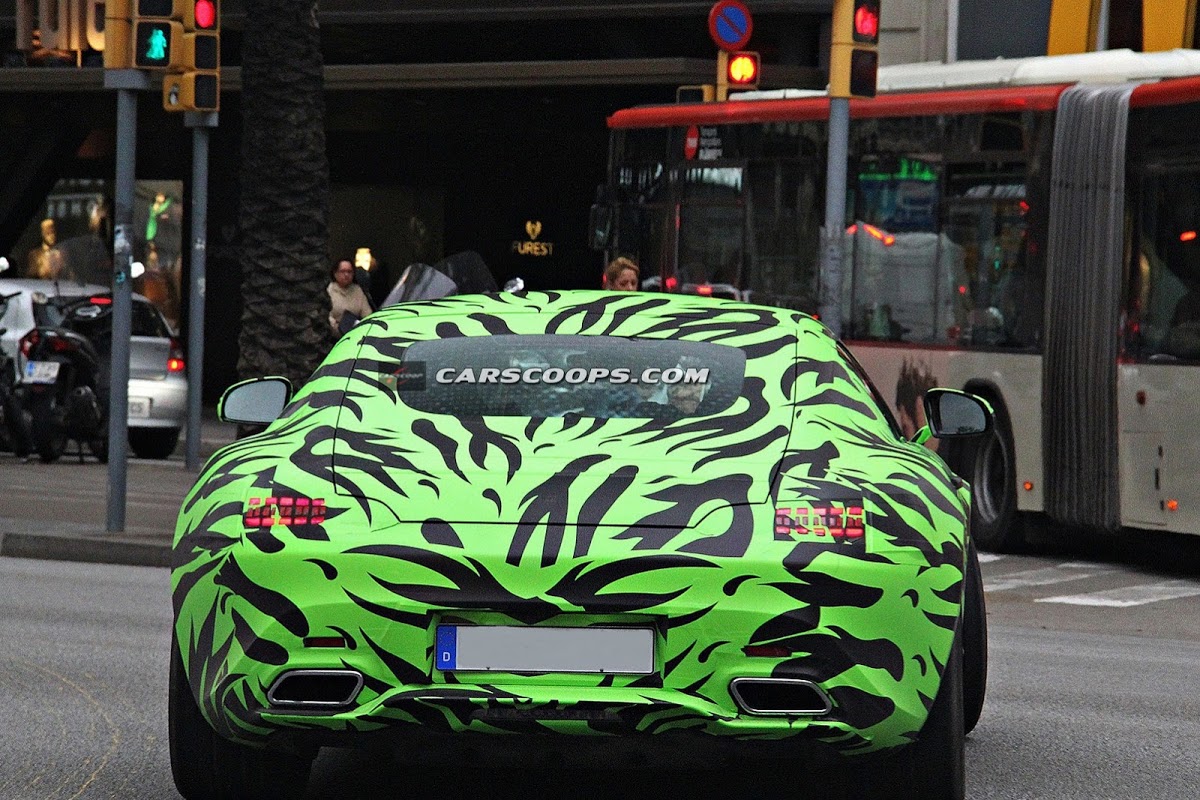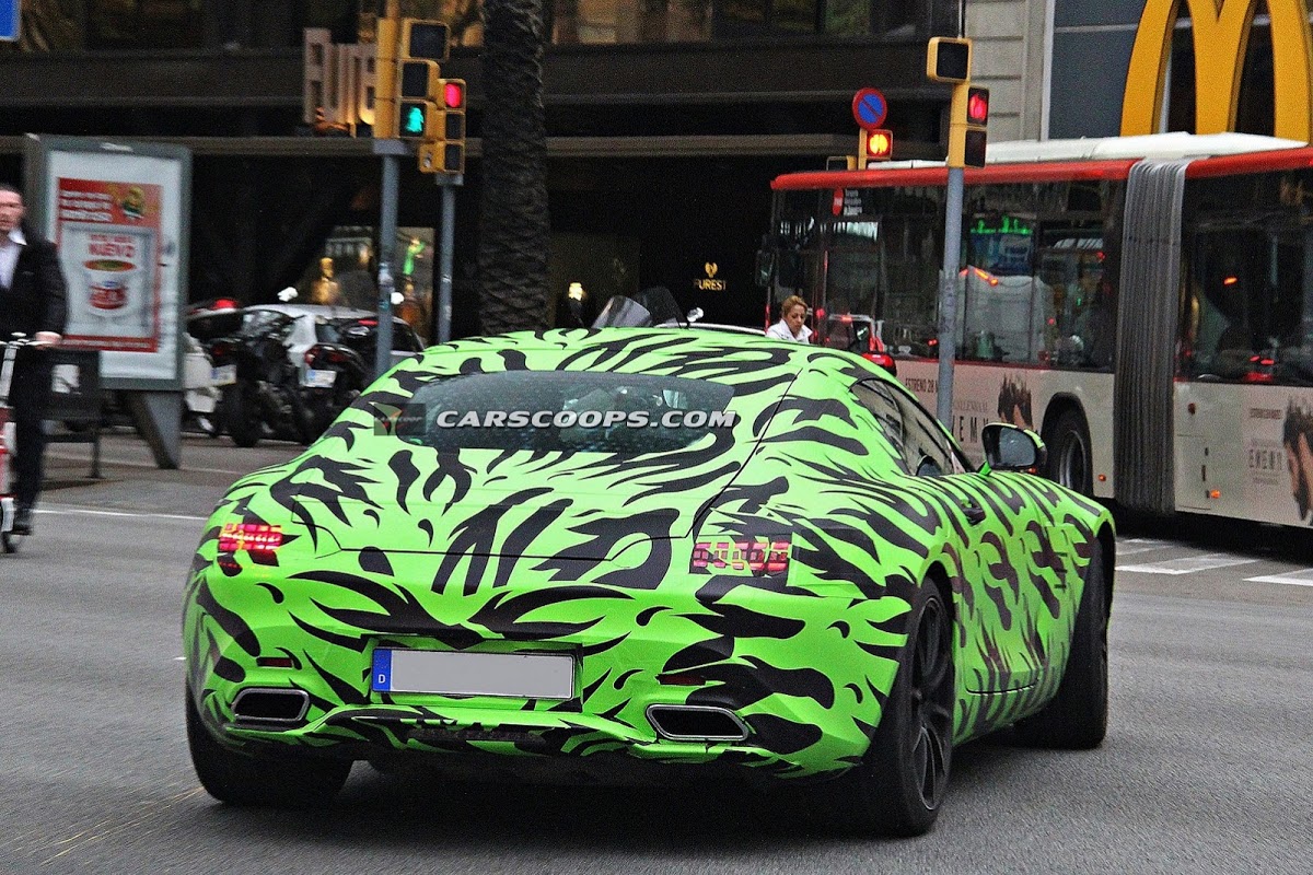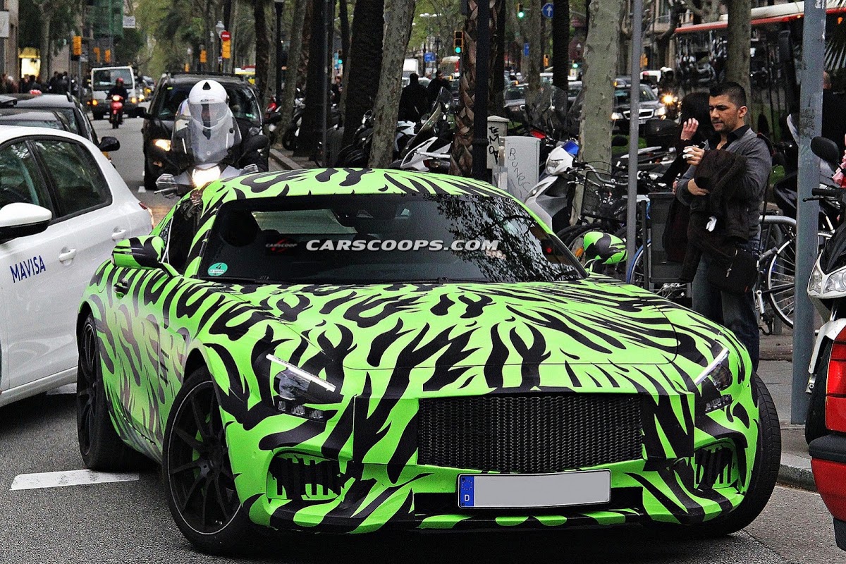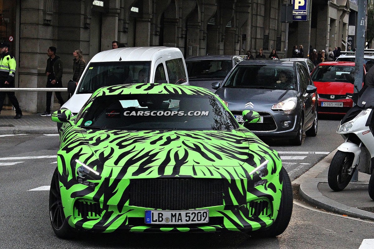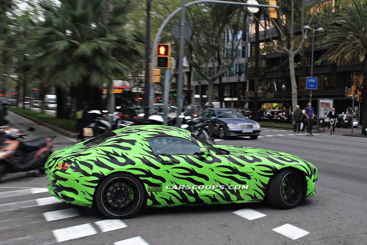 Who knows why Mercedes-Benz opted to draw attention on its next supercar prototype, said to be called the GT AMG or SLC, but it certainly achieved its goal with the application of the bright green and black tiger-stripes camouflage while strolling around the roads of Barcelona in Spain.