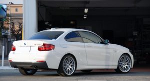 Personally, two things I dislike about the M235i’s appearance are a) the narrow instrument panel with the two large gauges and b) the stock alloy wheels. There’s nothing you can really do about the former but for the later, there are more choices than a Chinese take-out menu.