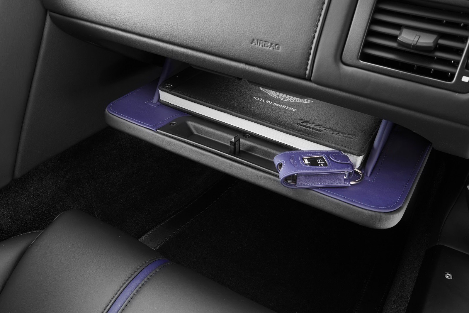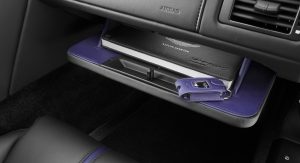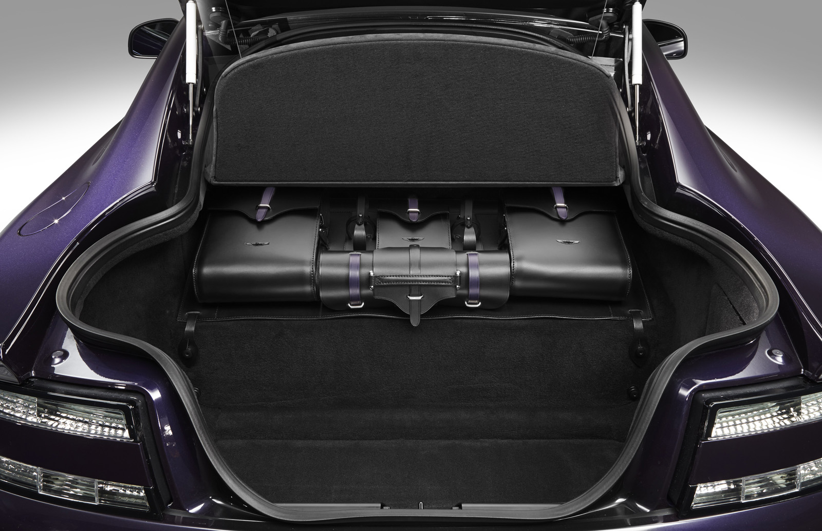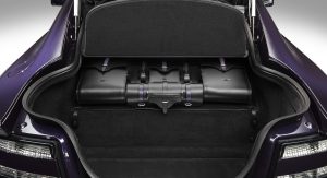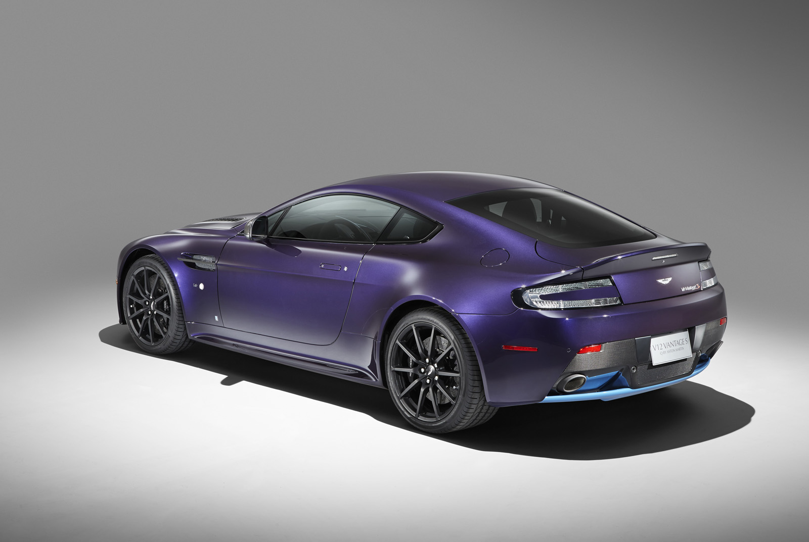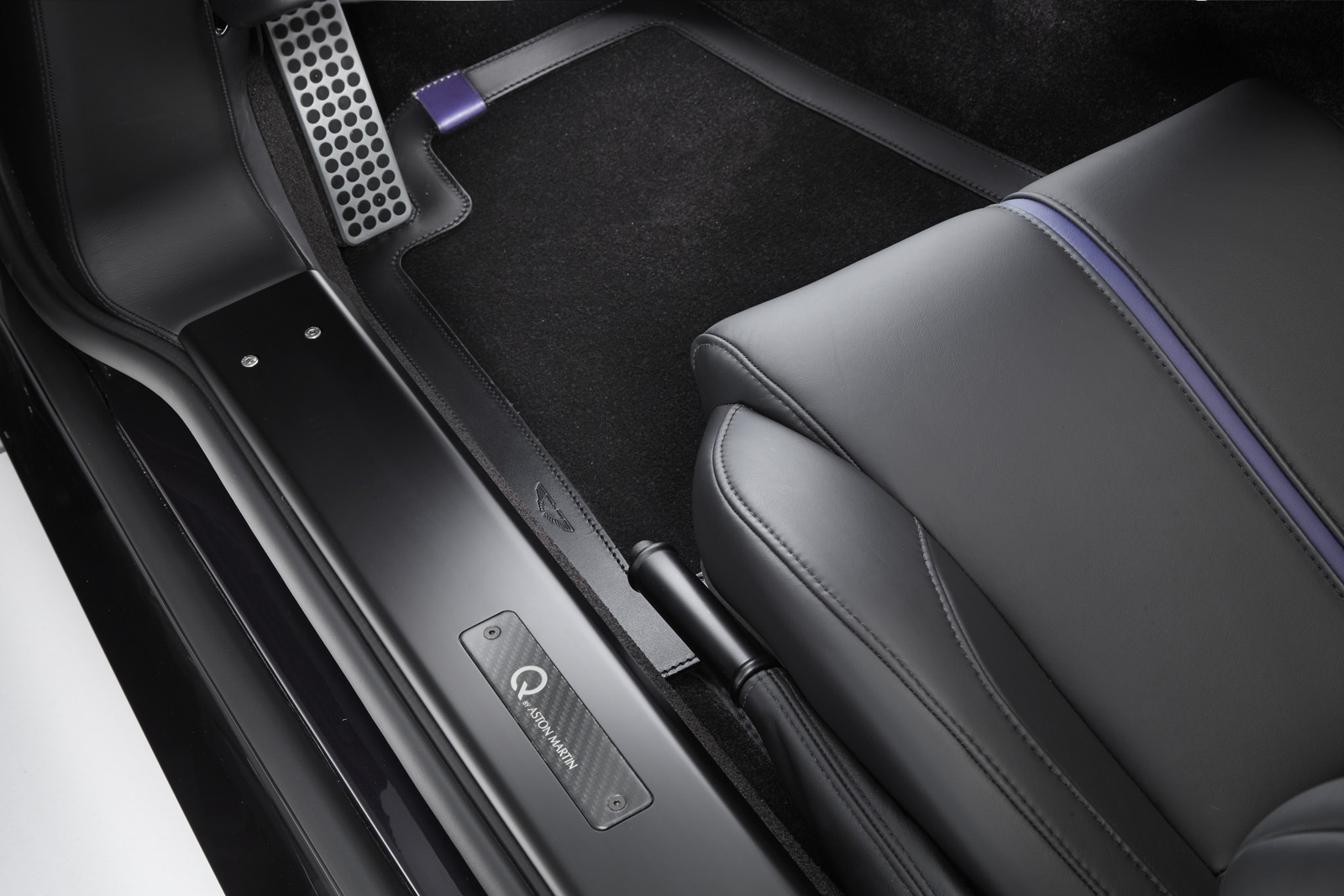 Finally, the Q by Aston Martin V12 Vantage S combines a purple amethyst exterior paint with contrasting bright painted Monterey Pearl front grille and rear diffuser. The Obsidian Black interior features Vivid Purple leather details on the seats, headliner, steering wheel and glove box lining. The cabin also includes a series of special carbon fiber details such as the rotary controls.