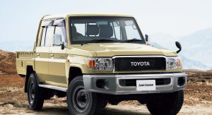 Toyota expects to receive roughly 200 orders a month for the off-roader, which goes on sale today at dealers throughout Japan. The Land Cruiser 70 will be available as a four-door van and, for the first time in Japan, as a double-cab pickup truck. Both variants will be built at the Yoshiwara plant in Japan.