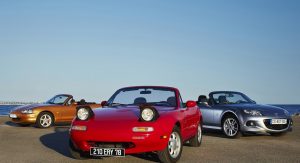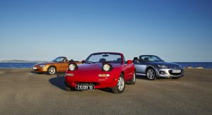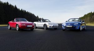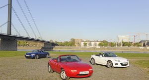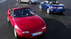 The MX-5 or Miata roadster has been around for a long time – a quarter of a century, to be exact, and in those years, we’ve seen three generations, not counting the latest one presented this week well ahead of its mid-2015 market launch.