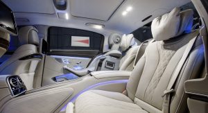 As you’d expect from a car bearing the Maybach nameplate, all that extra length benefits the rear passengers who also get unique individual seats and other exclusive details ranging from the Maybach-branded perfume AGARWOOD to silver-plated, handcrafted champagne flutes and a voice amplification function that “much easier for occupants in the front to communicate with the rear passengers”. Not that you really need the last function as Mercedes says the Maybach S-Class is the world’s quietest production saloon.