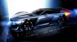 It’s (supposedly) made from lightweight materials and tips the scales at 1,380kg (3,042 pounds), while power comes from a hybrid unit pairing a 2.0-liter turbocharged boxer engine to one electric motor in the front and two in the rear, which achieve a total system output of 591 HP and 800 Nm (593 ft-lb).