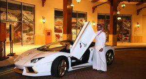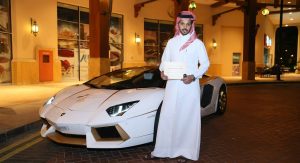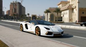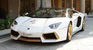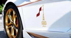 The specially tuned Aventador with the real gold-plated accents, both inside and outside, was a custom order from Qatari Businessman Mr. Jaber Bin Abdallah Al Hmaidi who the company says, “requested to modify this car and make it ready for the Qatar National Day 2015 festivals”.