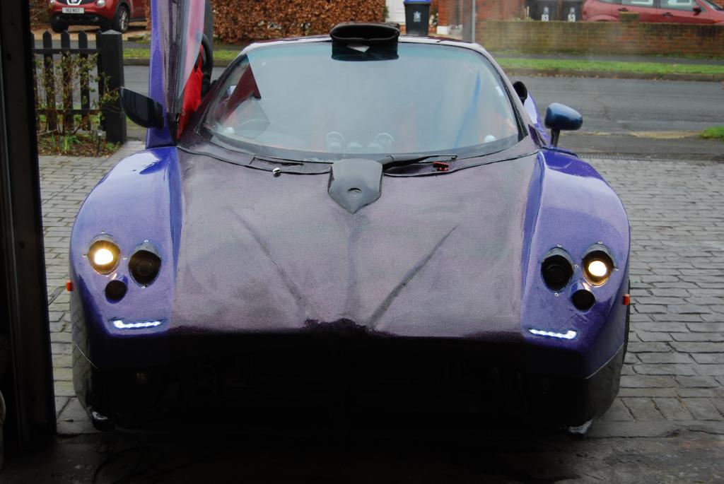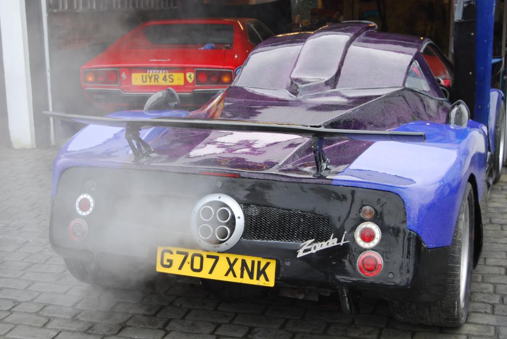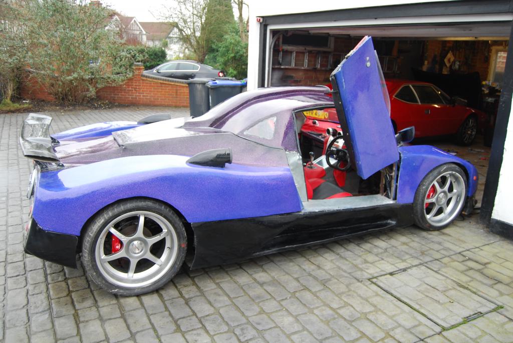 “What is left to do… finish polishing, fit new Lotus Elise screen (which I will supply), connect windscreen wiper, fit horn (supplied) and fit screen washer (not supplied), connect the blower to dash vents. Calibrate speedo. The car could also do with a new battery.. Then take it to your friendly IVA tester. The car has the logbook for the Scorpio which was updated when the Zonda had its V12 Jag engine. So in theory the car is a V12 Scorpio, the registration number fitted to the rear is from the Scorpio and the car is SORN. I have no idea is you can use the number plate and it will be your responsibility to ensure its all legal before using on the road. Please remember this is not a kit car, it is entirely handmade from scratch.”