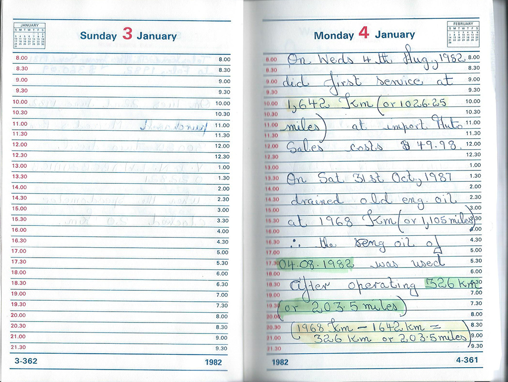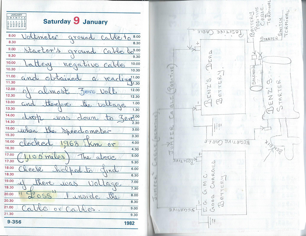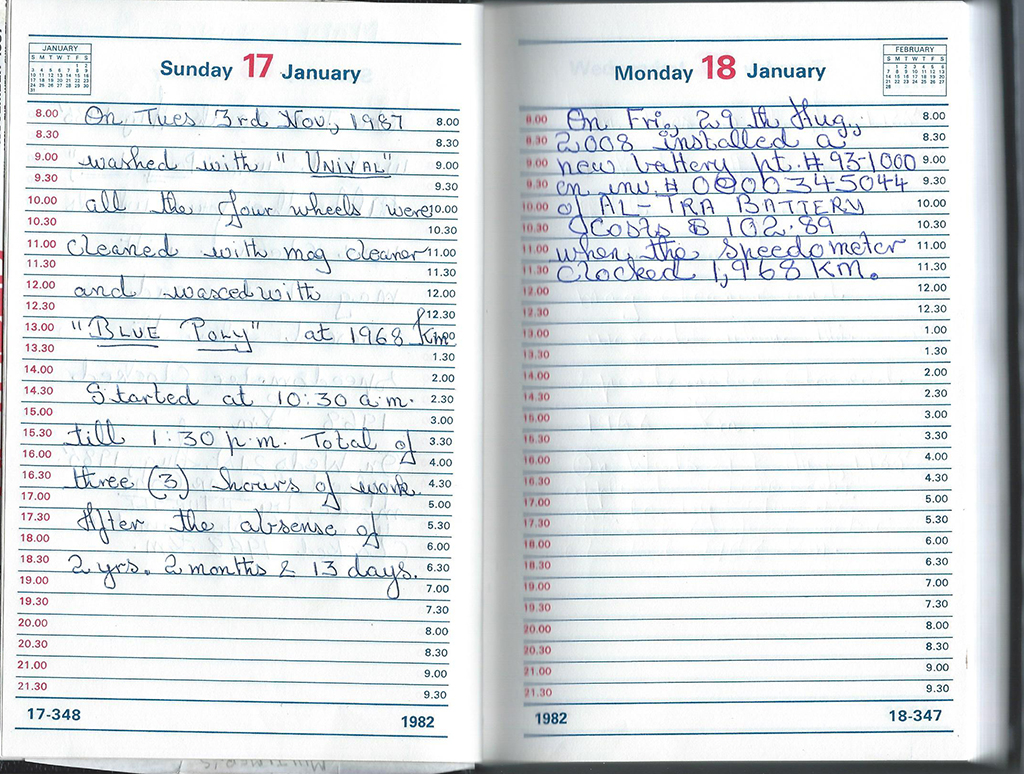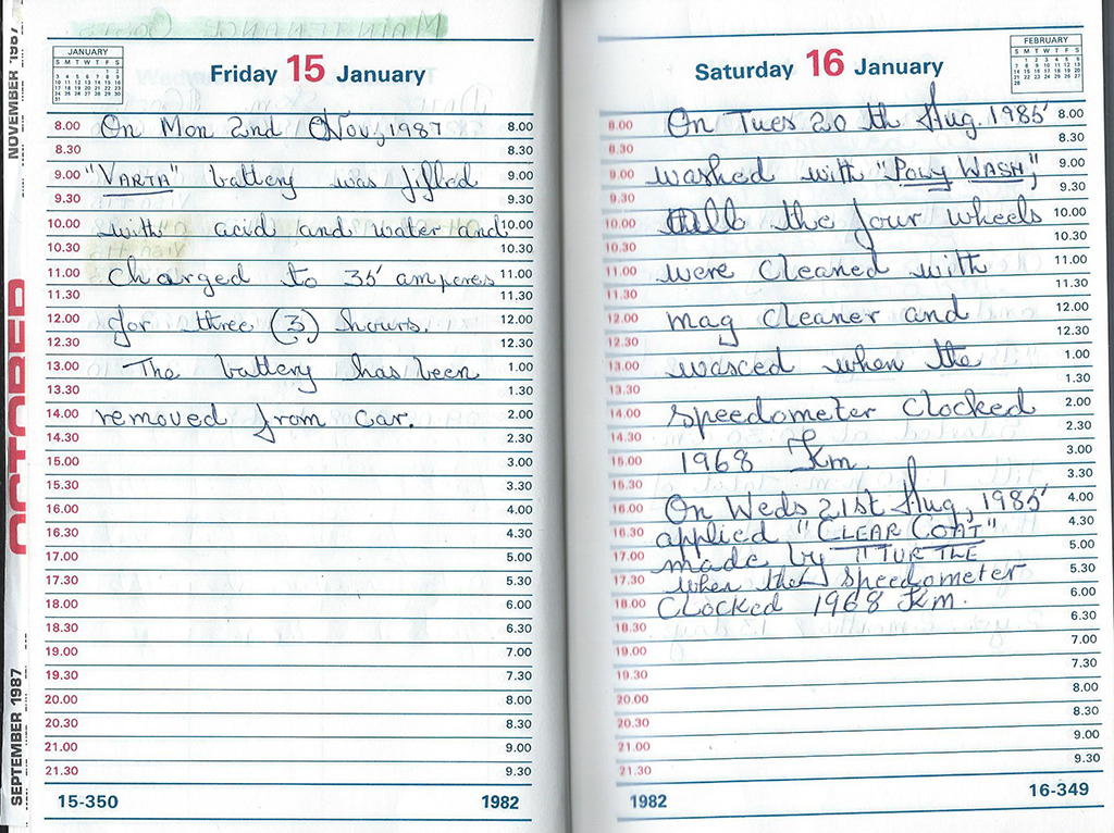 The current seller of the car states that Mawani’s intention was “not to actually drive the car but to lovingly maintain it while he admired it in his garage”, and this is evidenced through a sample of hand written notes with precise maintenance details and even schematics (!) covering a dead battery that will be included with the sale