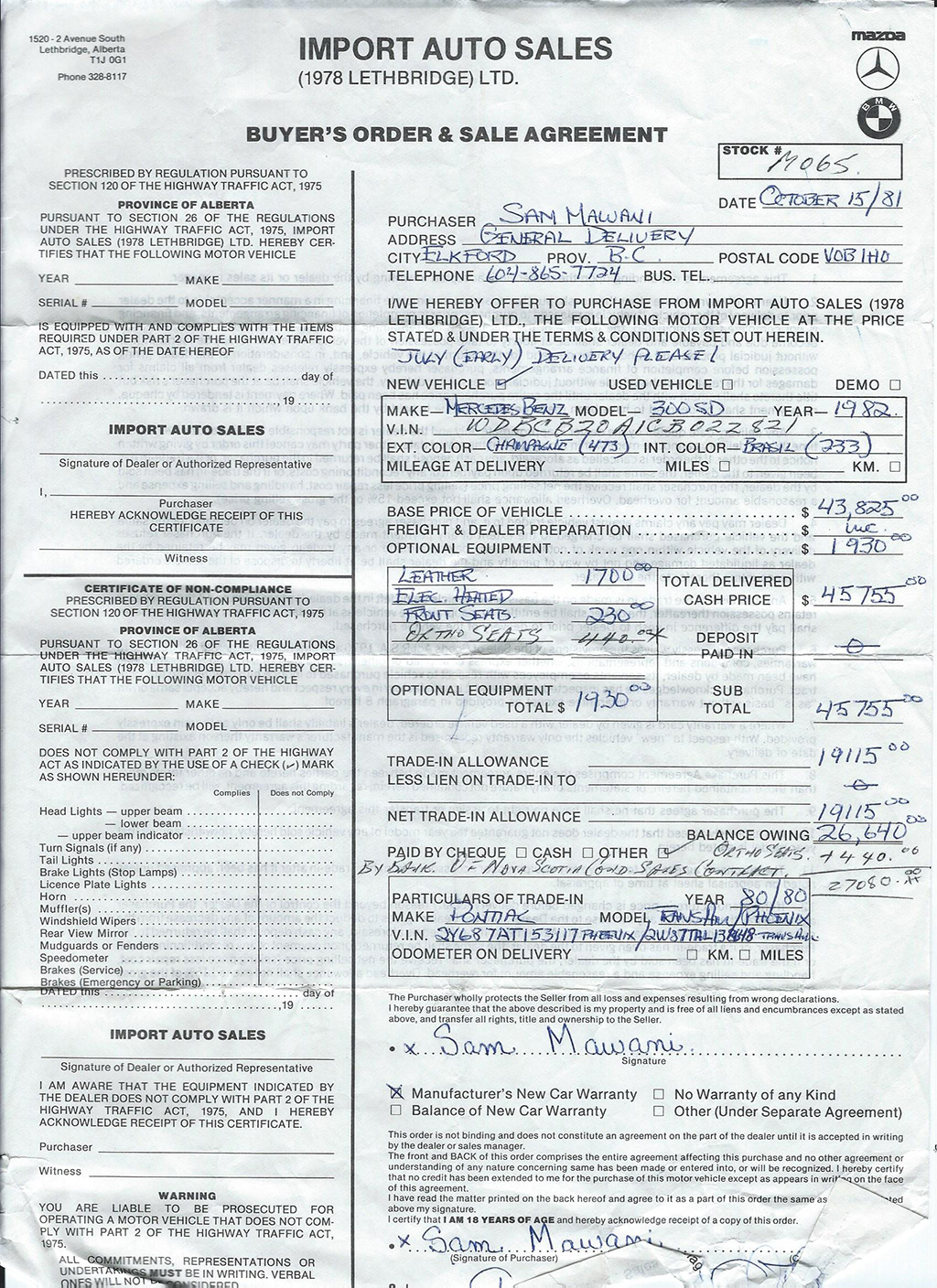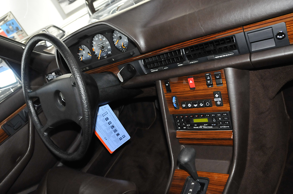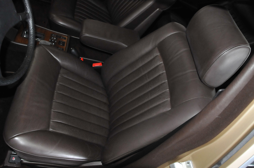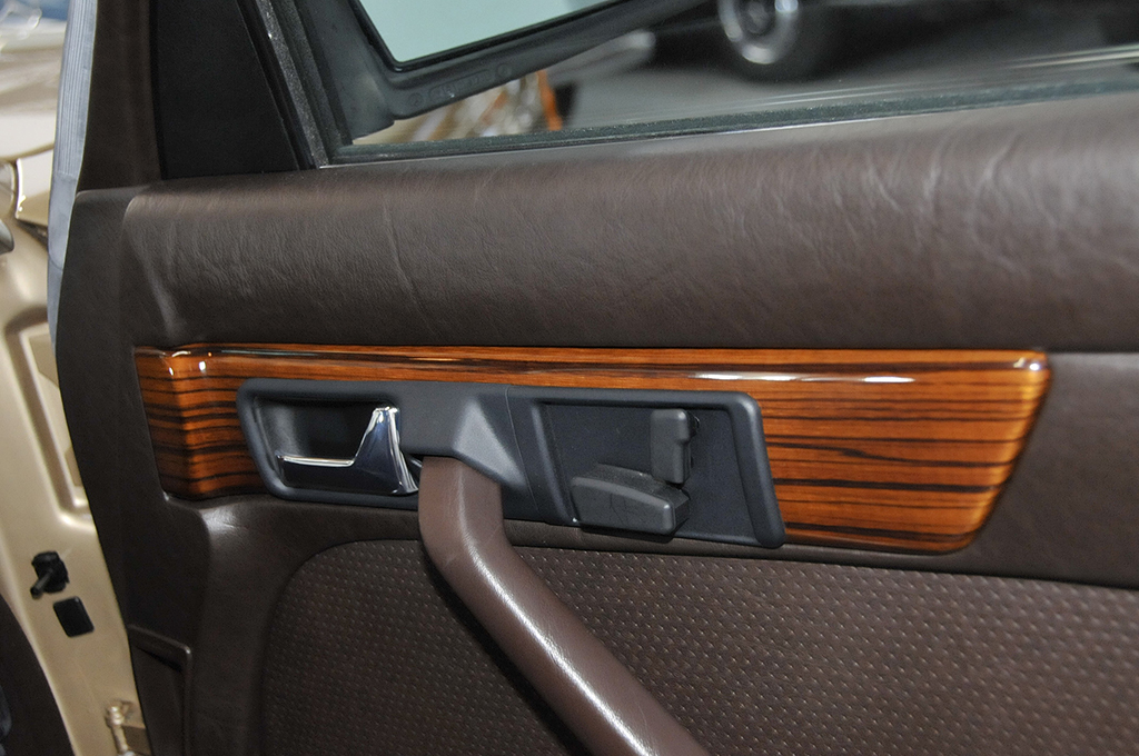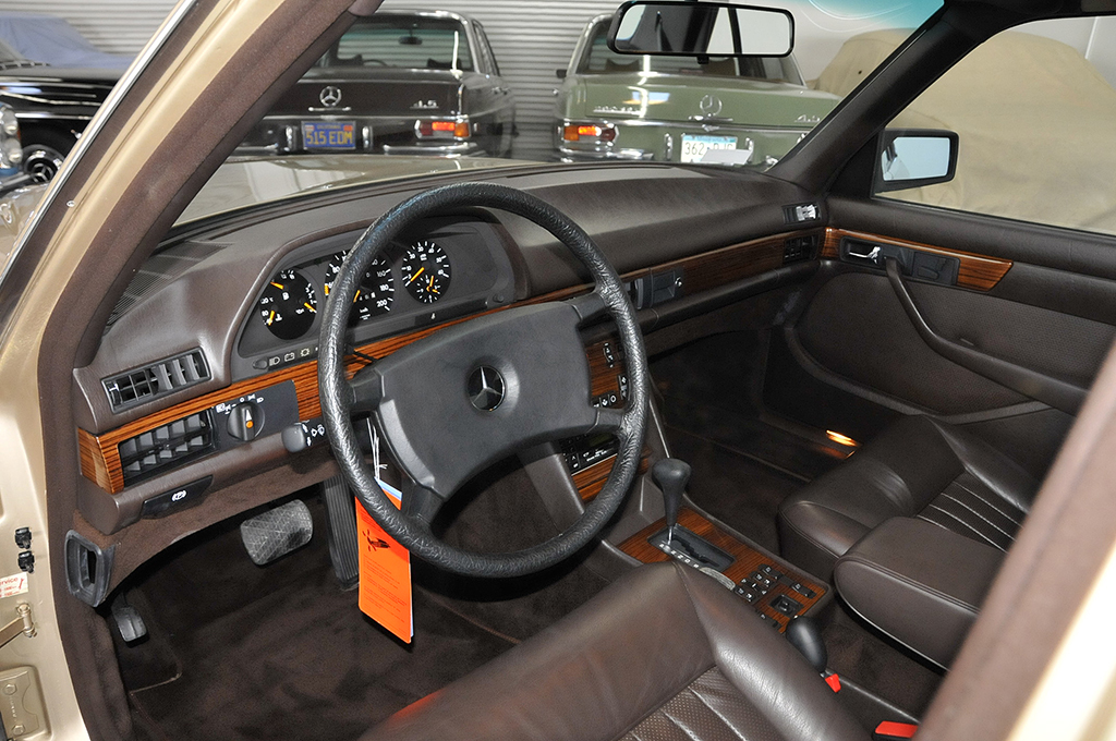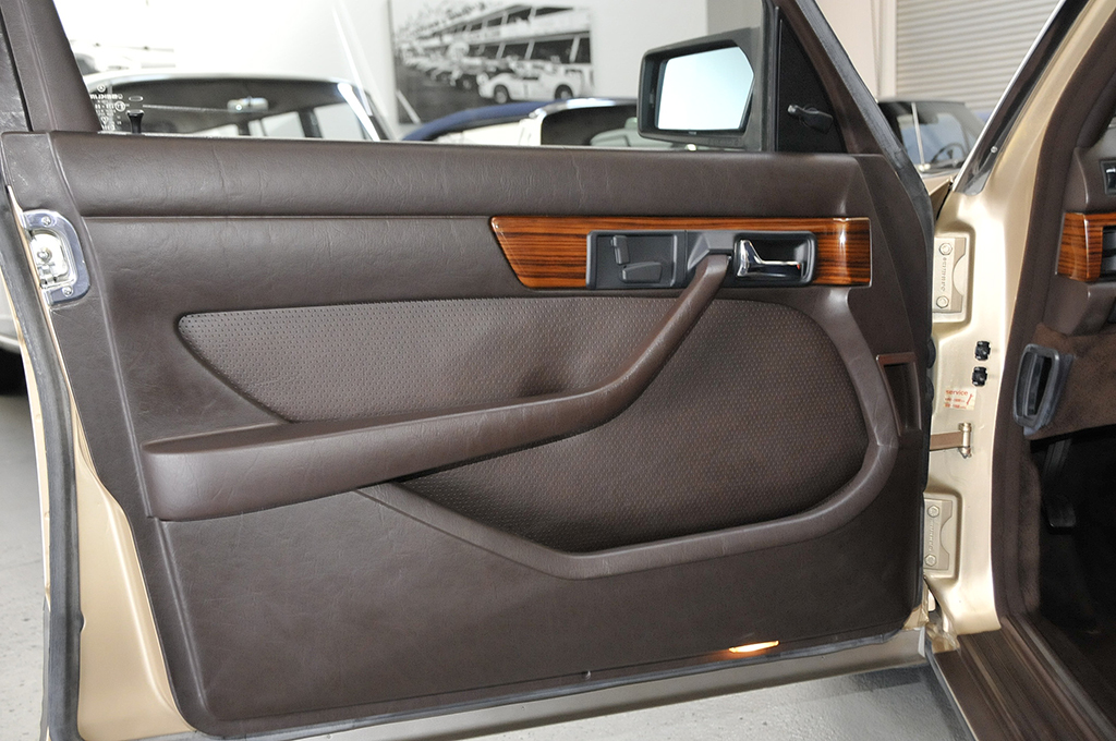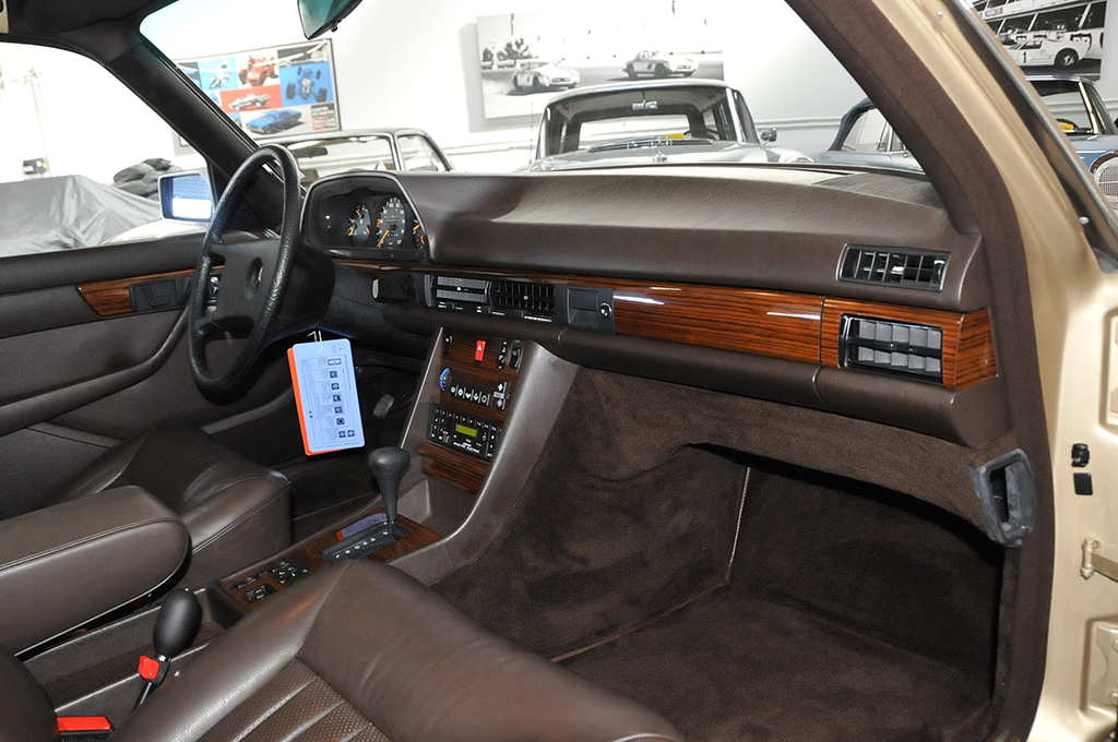 The original sales receipt notes a selling price of $45,755 Canadian for this SD and included optional leather, heated seats and orthopedic seats. And it has been fitted with a block heater but lacks a sunroof. The car remains today in essentially the same condition as when Mr. Mawani drove the car off the premises of Import Auto Sales Mercedes-Benz in Alberta, Canada on June 22, 1982. The Champagne Metallic paint remains virtually untouched and original. The Brasil Brown leather interior is absolute perfection embodying the suppleness, scent and appearance of a new SD. All the wood remains perfect. Headliner and carpets appear as new. All switchgear shows essentially no evidence of use and the faces of all gauges remain brilliant and bold. Pedal pads appear as new.