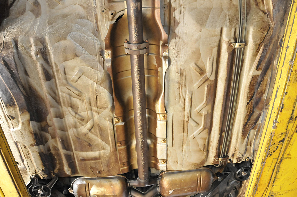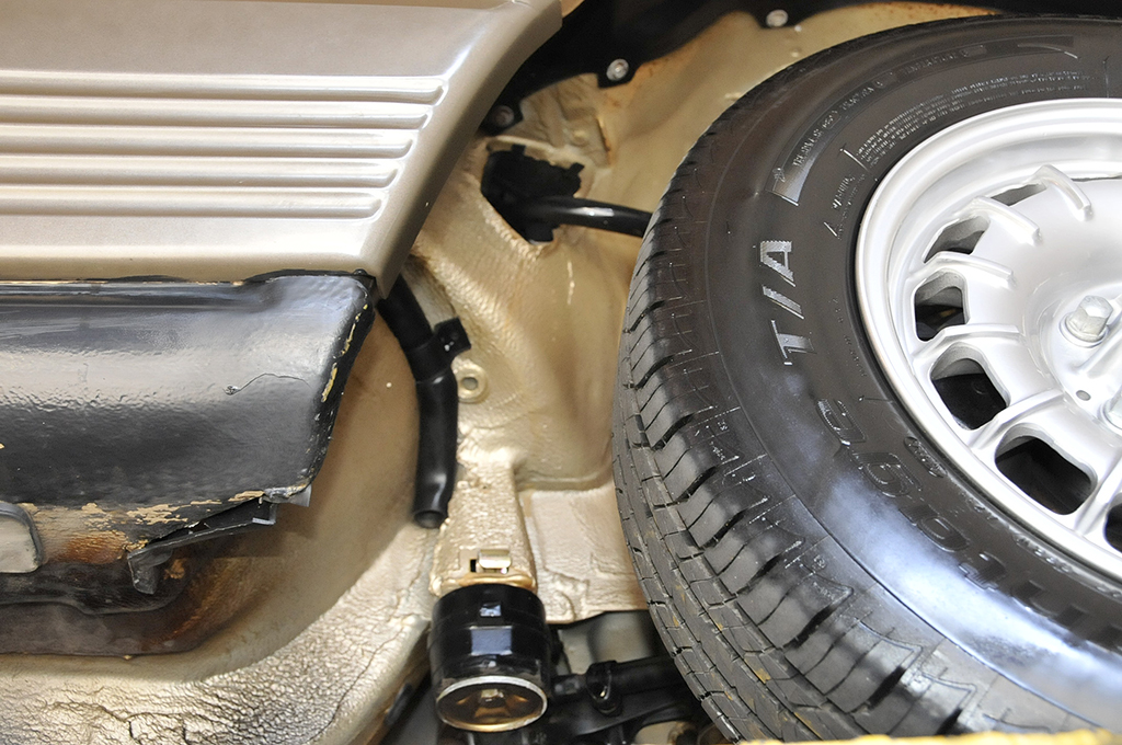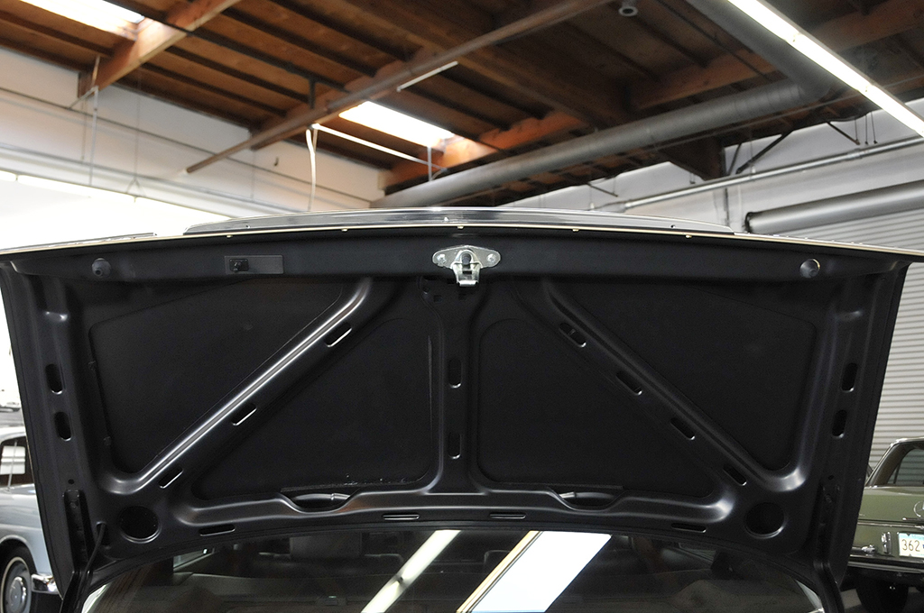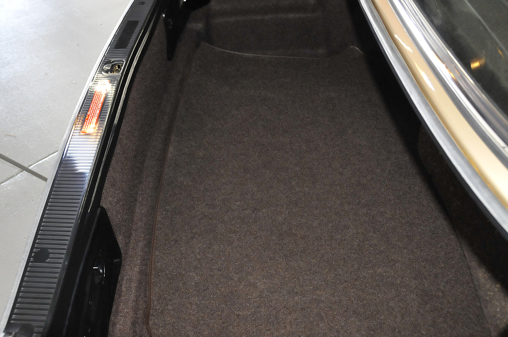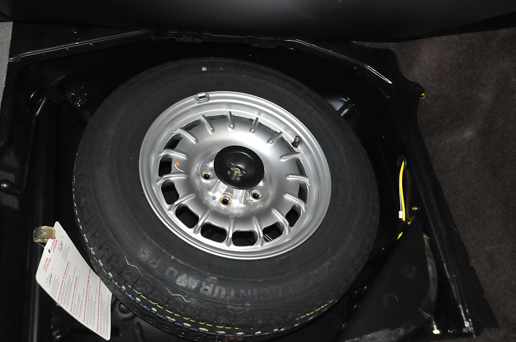 All the peripheral items appear unused and preserved to perfection: Spare wheel/tire, jack, tire changing placard, safety kit, quick reference red and blue placards etc. Opening the hood reveals an engine bay area appearing virtually as new with all the factory waxol coating intact, all decals intact and perfect, hood pad in perfect condition and all hardware finishes in as-new condition. The torque value paint swatches remain brilliant throughout both the engine bay and the undercarriage.