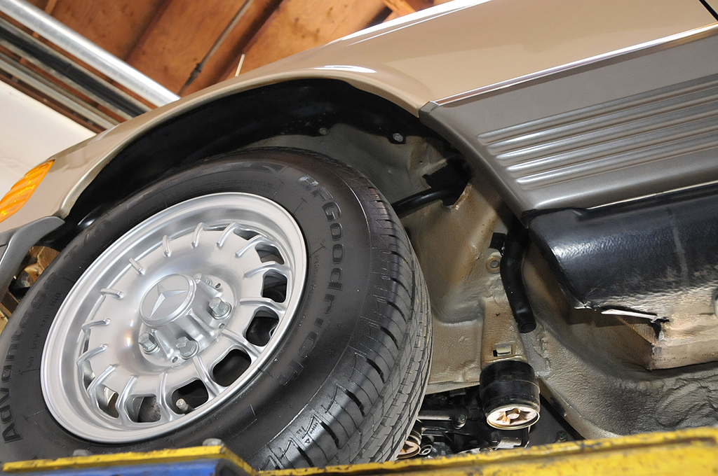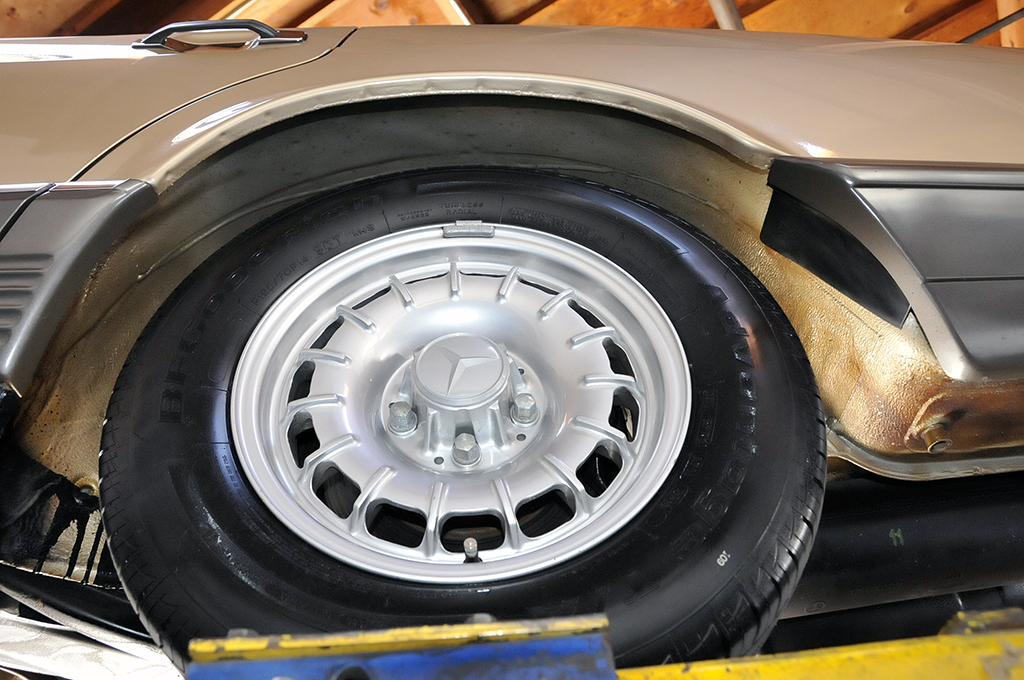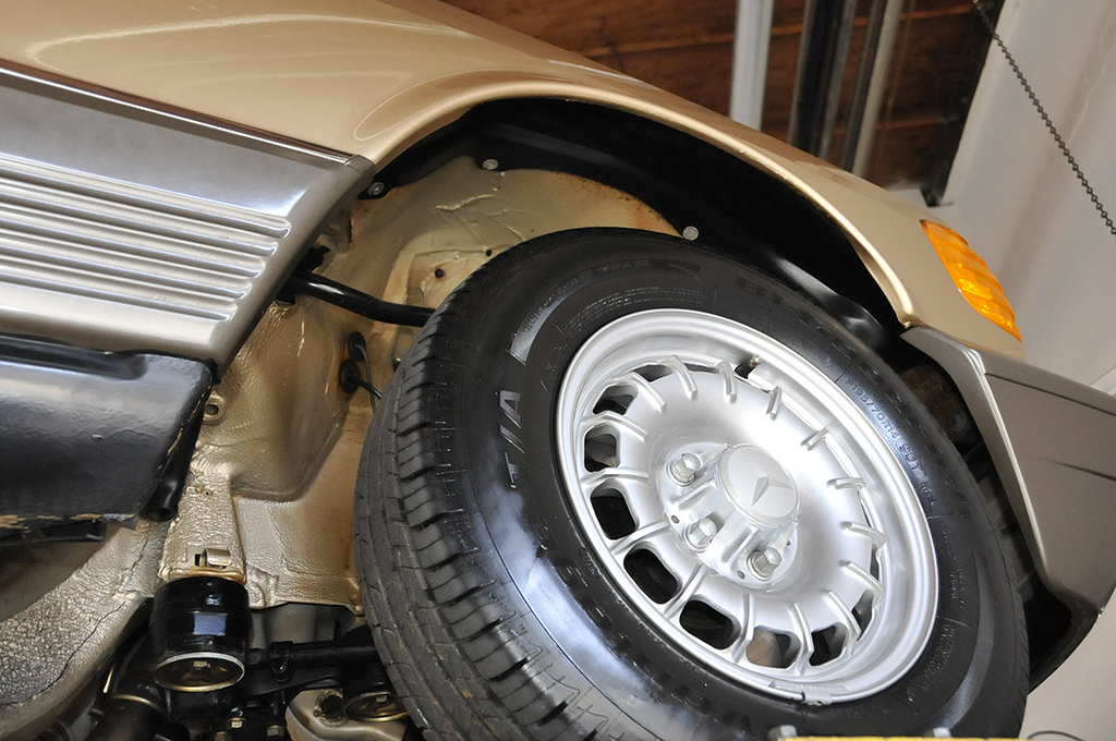 The car was re-commissioned for use @ 1,969 km in late 2014 when the fuel tank was removed and cleaned, new tires installed (non-MBZ weights used for balance), fuel lines renewed, fuel filter renewed, brake fluid renewed, coolant renewed, thermostat renewed, battery renewed, and “A” service performed. The car underwent and passed the Alberta Canada Government inspection process before being returned to the road. Every item functions correctly. The car performs as new.