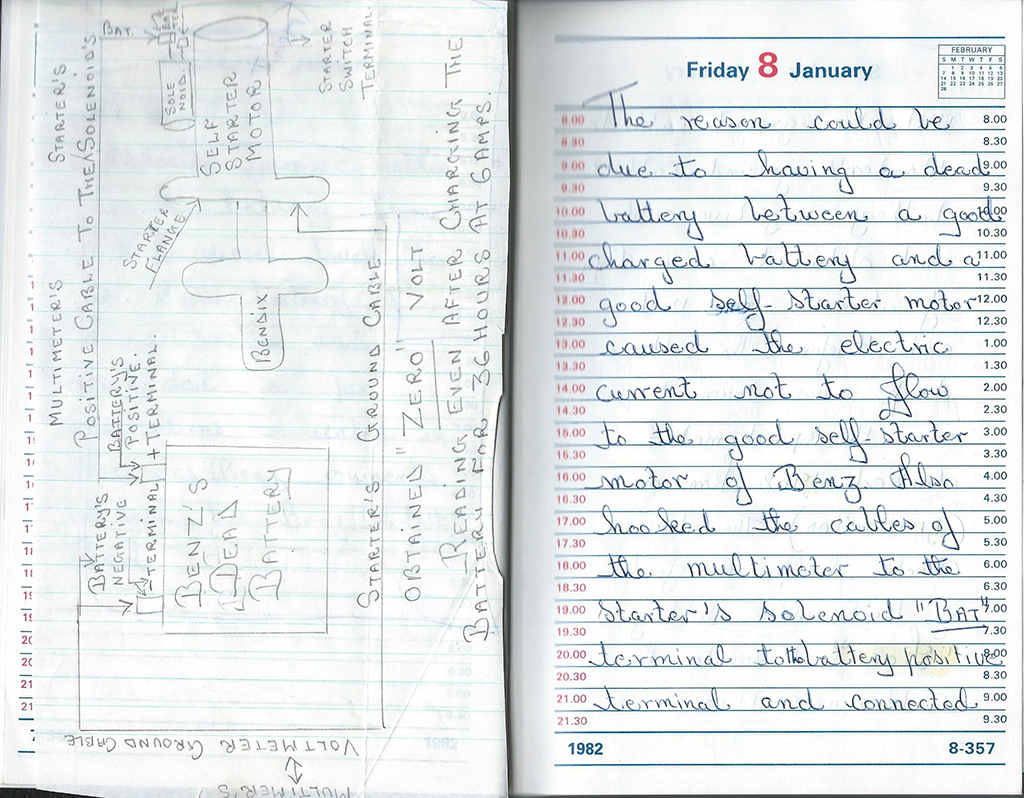 We’re excited to present an extraordinary 1982 Mercedes-Benz 300SD. Based on our research and the associated documents provided with the car, when the original owner ordered this car on October 15, 1981 his intention was not to actually drive the car but to lovingly maintain it while he admired it in his garage. It would be a massive understatement to say he was precise individual who seems to have reveled in the minutia of maintaining his essentially unused 300SD. His analysis and schematics covering a dead battery episode reveal much about how this man functioned.