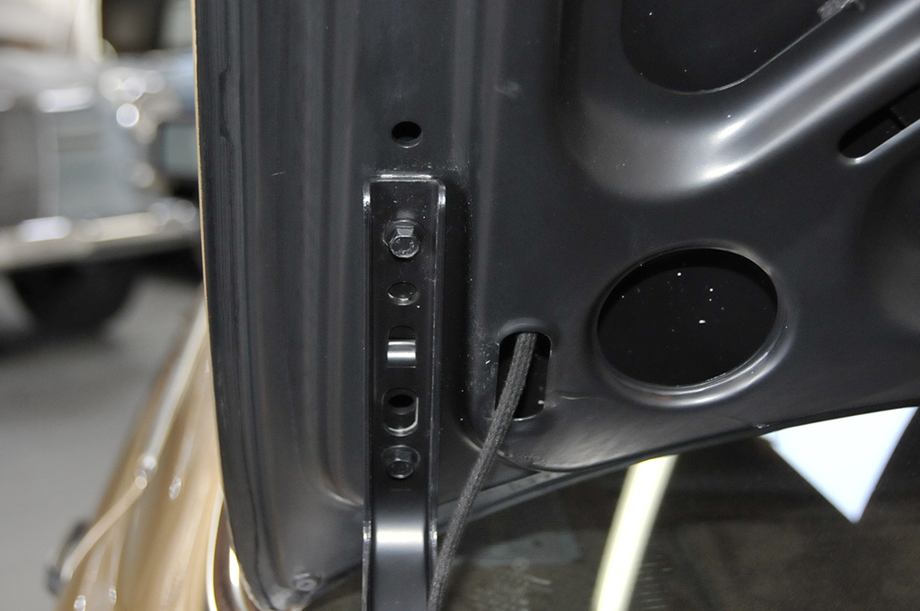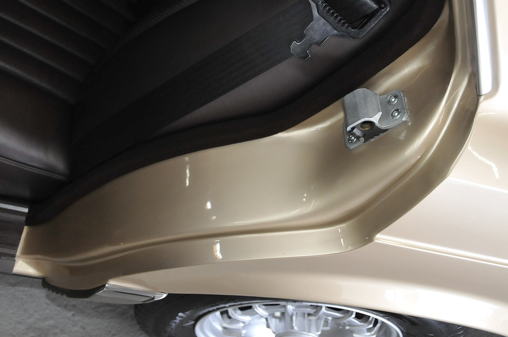 The undercarriage appears essentially as new as well with the original honey colored waxol protectant intact. Undercarriage hardware fairly glows. The exterior brightwork remains spectacular with negligible evidence of use. Window/windshield/back glass and door cap brightwork are stunning. The wheels reveal zero blemishes.