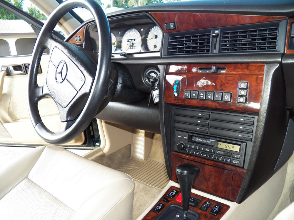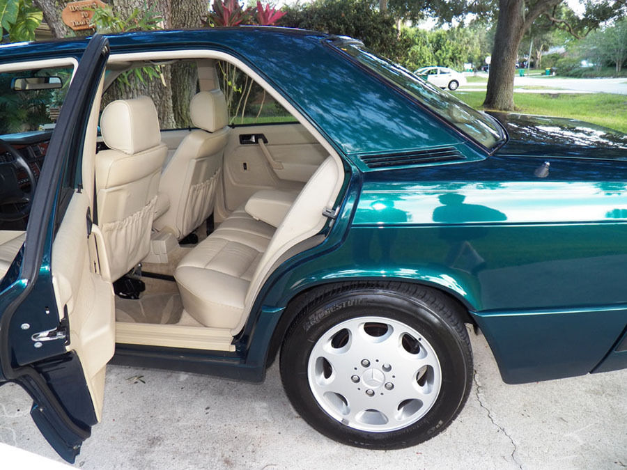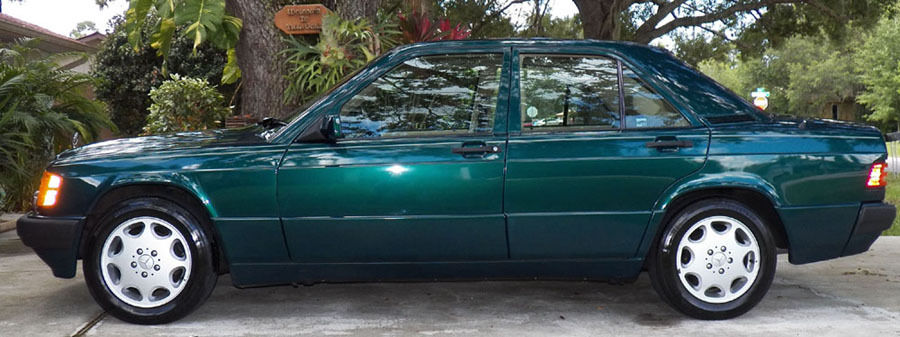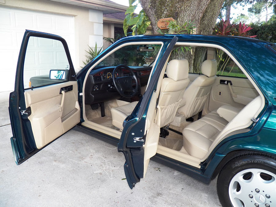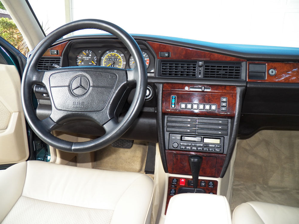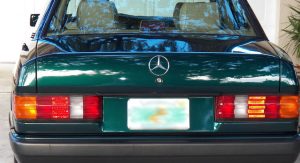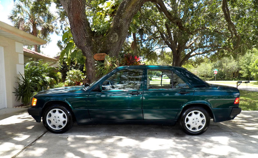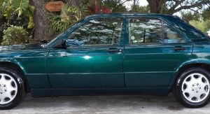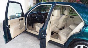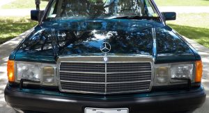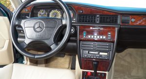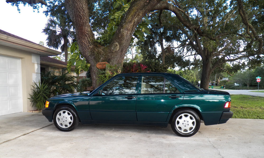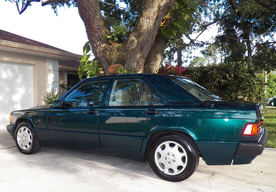 The two-owner 1993 Mercedes 190E is from the last year of production for the US and sports a beautiful Emerald Green metallic shade and a light beige interior that looks to be in better shape than many 3-year old used cars we’ve seen around.