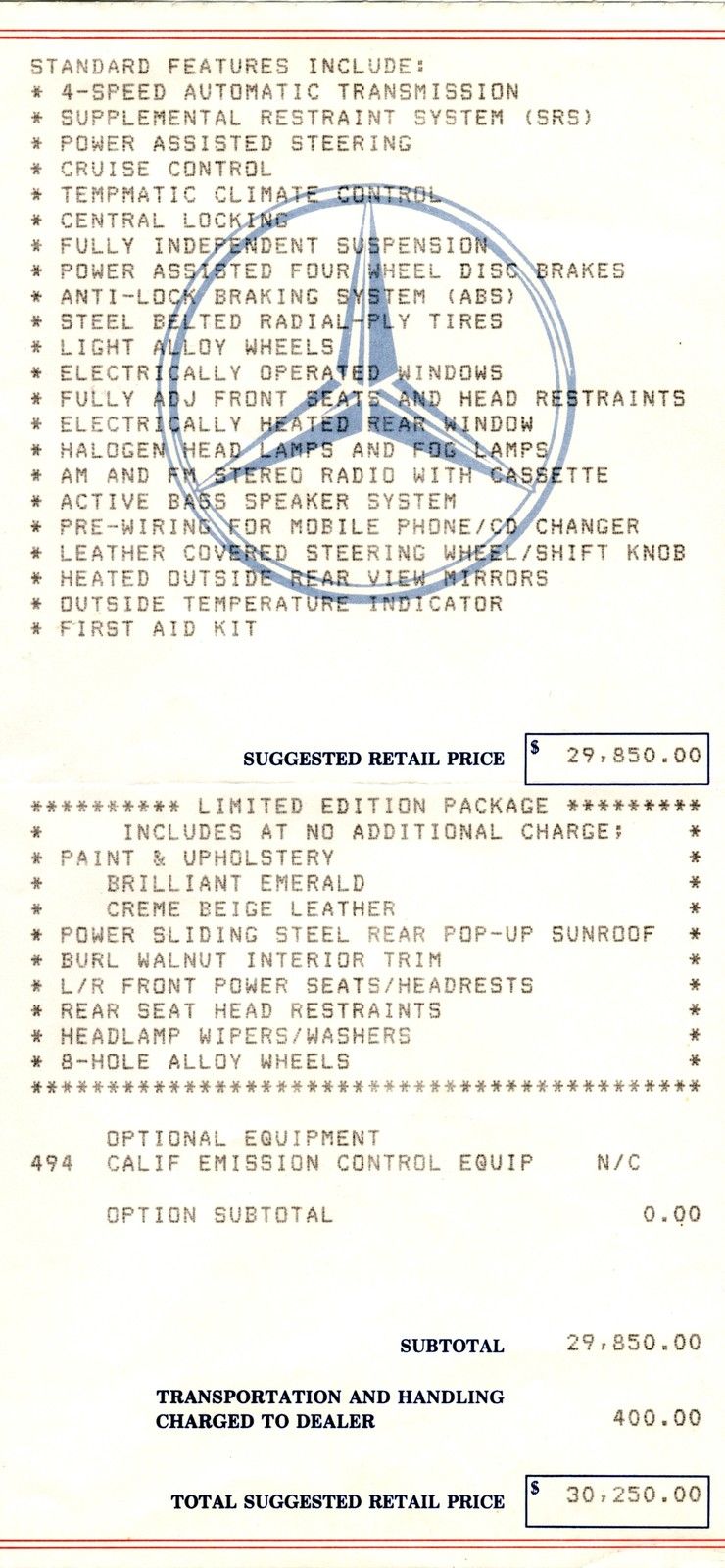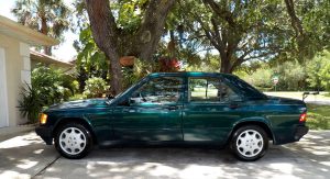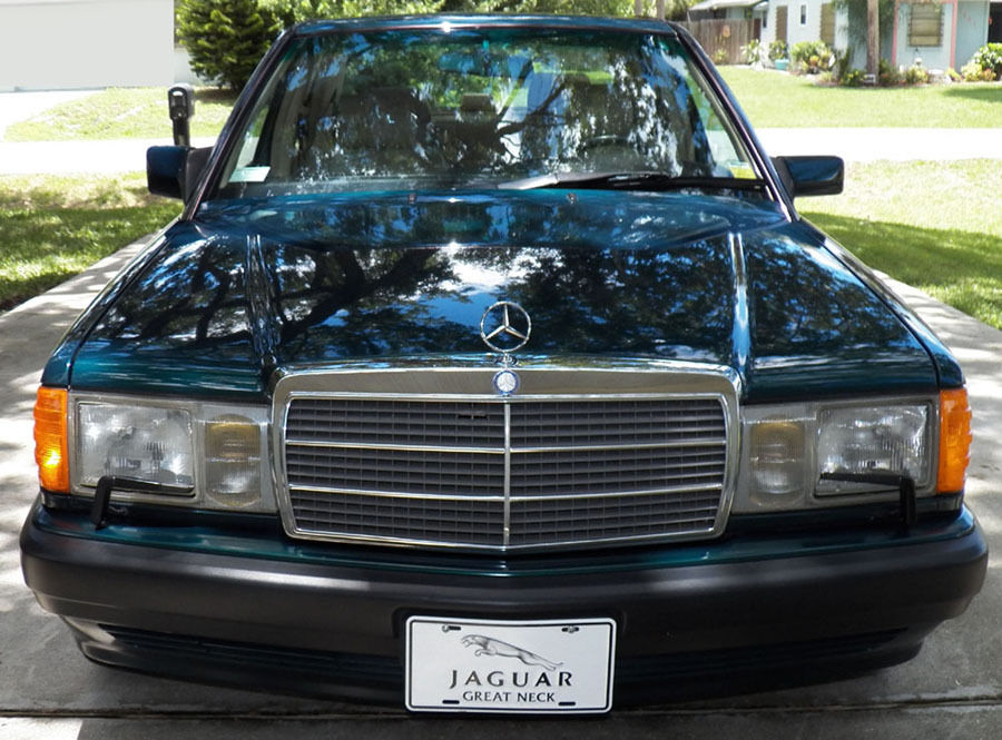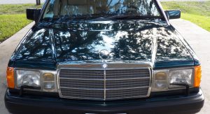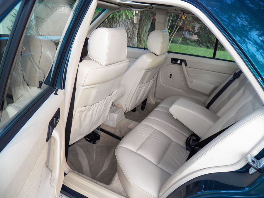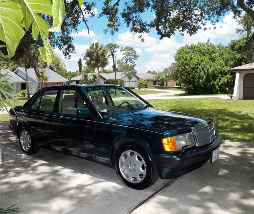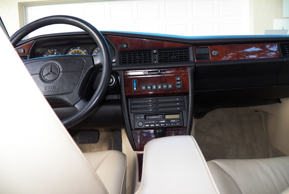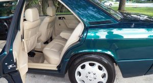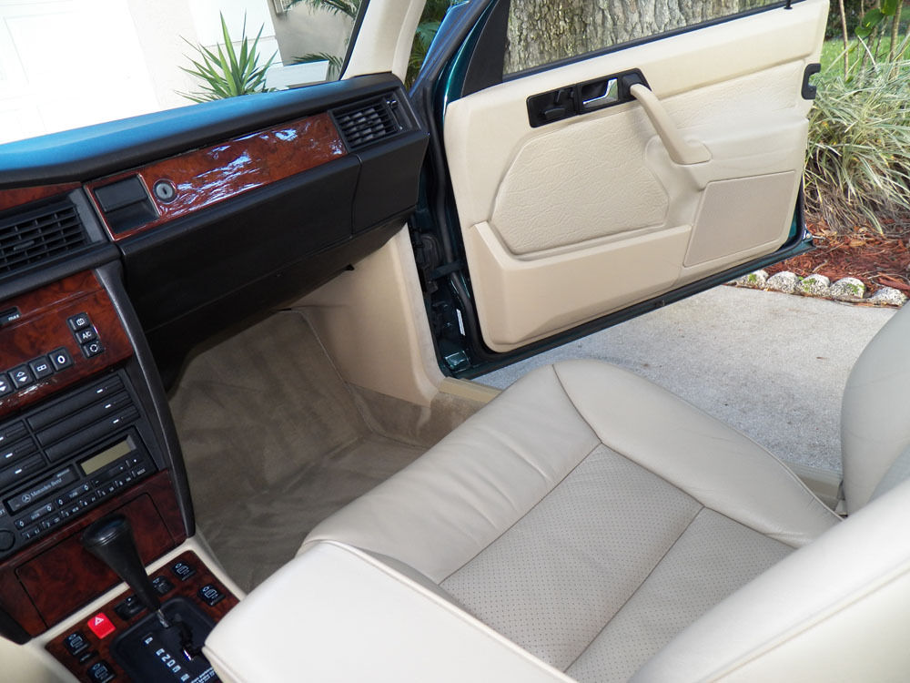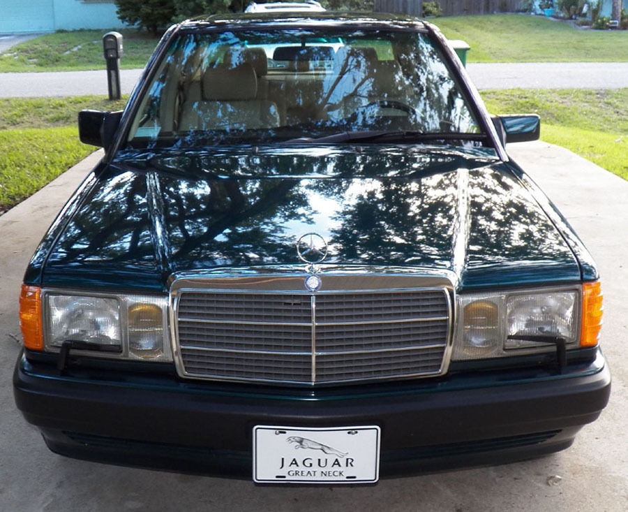 The two-owner 1993 Mercedes 190E is from the last year of production for the US and sports a beautiful Emerald Green metallic shade and a light beige interior that looks to be in better shape than many 3-year old used cars we’ve seen around.