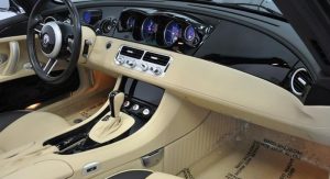 Alpina also gave its Roadster a softer suspension set up, 20-inch wheels on conventional (instead of Run Flat) tires, bespoke upholstery, blue instrument panel gauges, and a re-trimmed steering wheel.