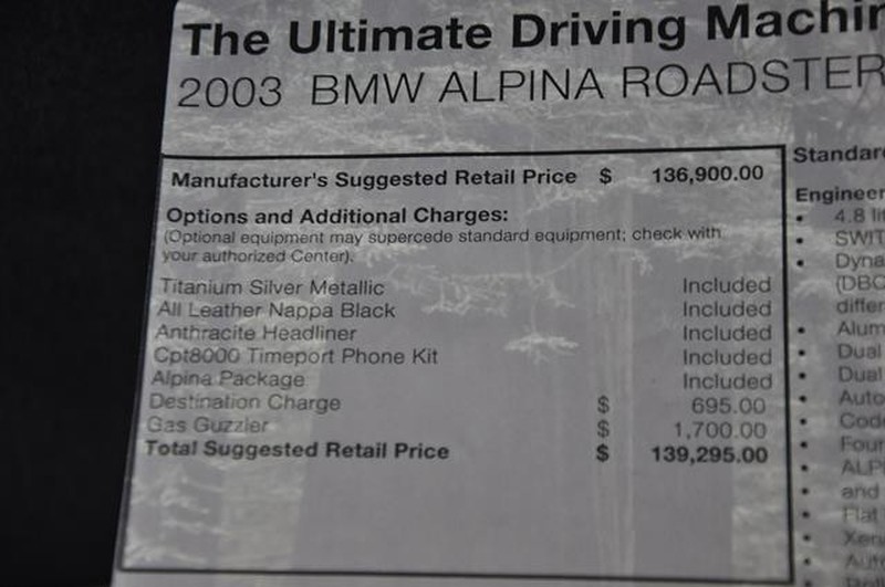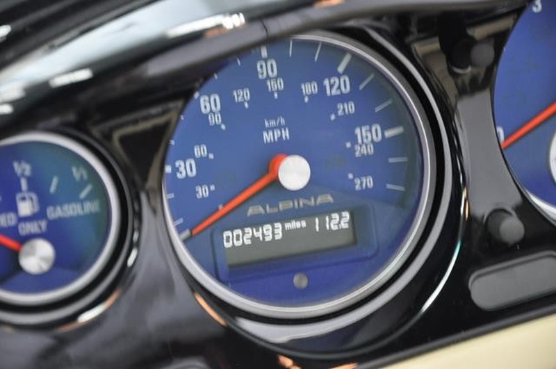 Alpina also gave its Roadster a softer suspension set up, 20-inch wheels on conventional (instead of Run Flat) tires, bespoke upholstery, blue instrument panel gauges, and a re-trimmed steering wheel.