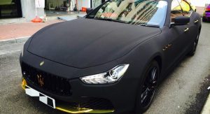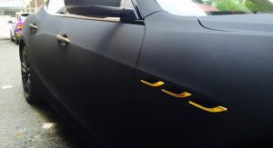 Surprisingly, this particular build is pretty easy on the eyes. The folks over at Impressive Wrap Hong Kong did a solid job mixing the satin black painted wheels with the matte black suede and the gold chrome accents on the front spoiler, rear diffuser, side vents, door handles and badges.