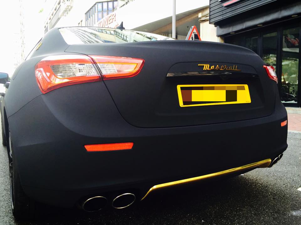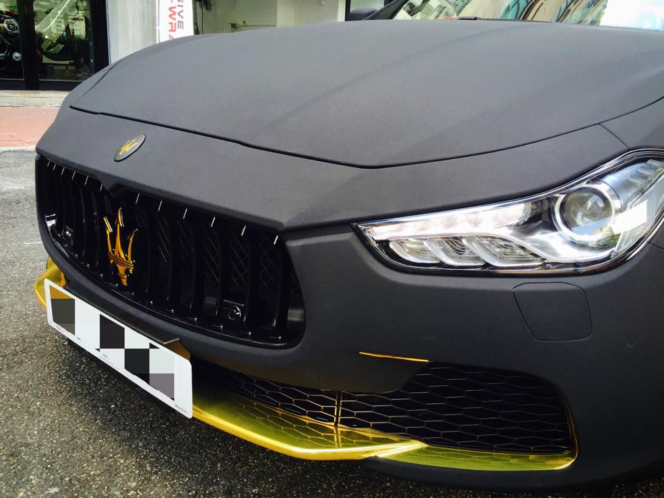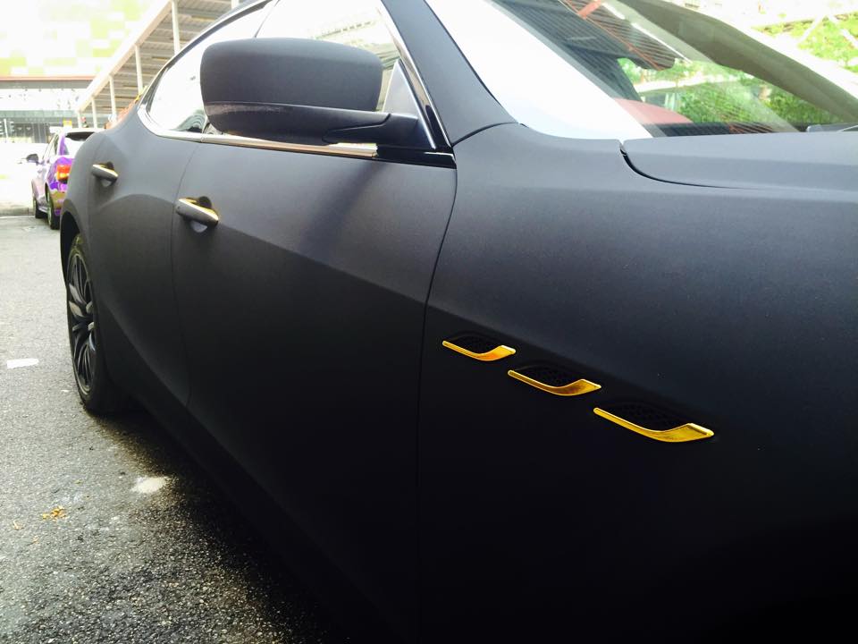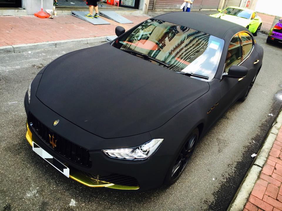 Surprisingly, this particular build is pretty easy on the eyes. The folks over at Impressive Wrap Hong Kong did a solid job mixing the satin black painted wheels with the matte black suede and the gold chrome accents on the front spoiler, rear diffuser, side vents, door handles and badges.