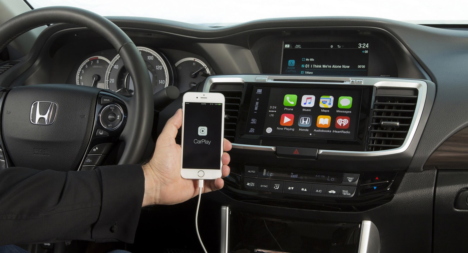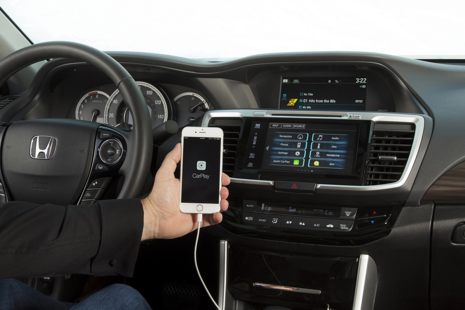Honda’s mid-size sedan continues with a two-screen setup, as there’s an even larger 7.7-inch high-res screen positioned above the Display Audio unit giving access to things like audio settings, turn-by-turn directions, LaneWatch and Rearview cameras and incoming calls.