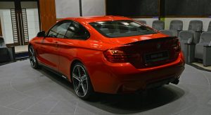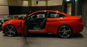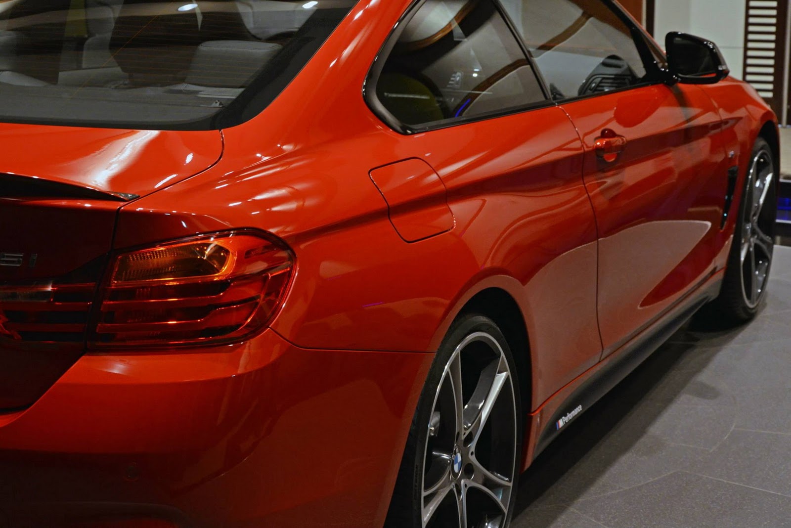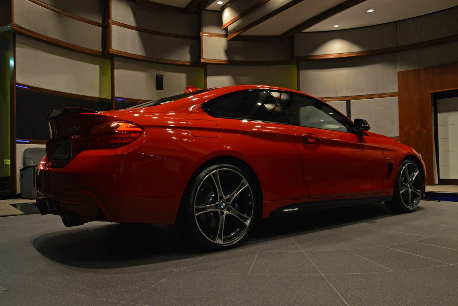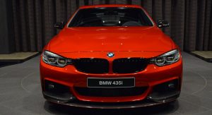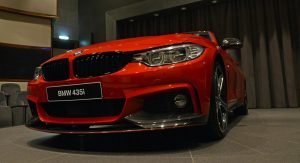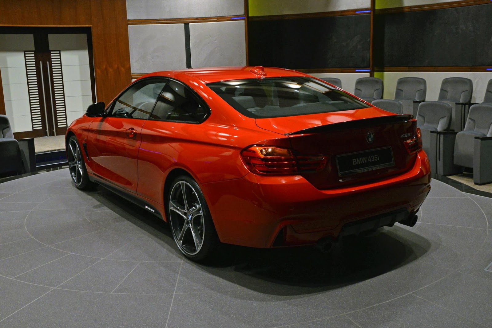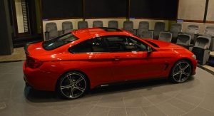 This gorgeous red 435i Coupe was on display in Abu Dhabi at a BMW dealership, wearing M-Sport duds and obviously lacking a very important badge on the truck lid.