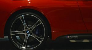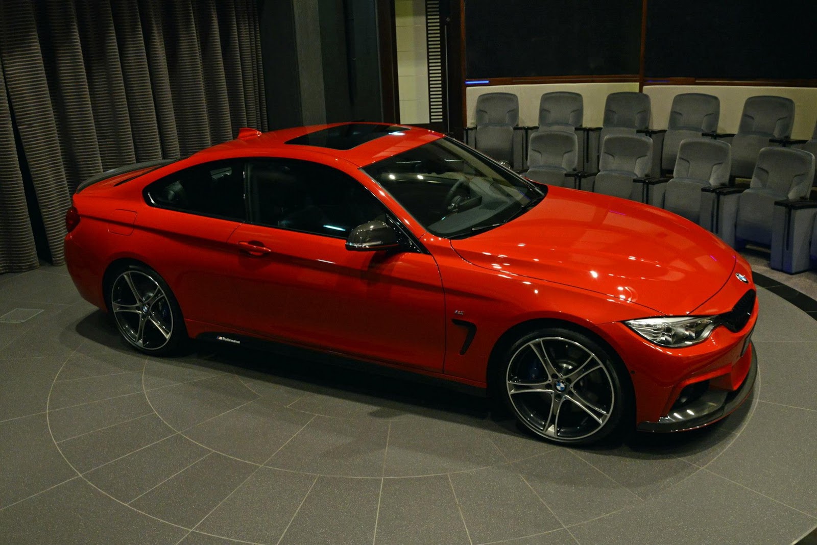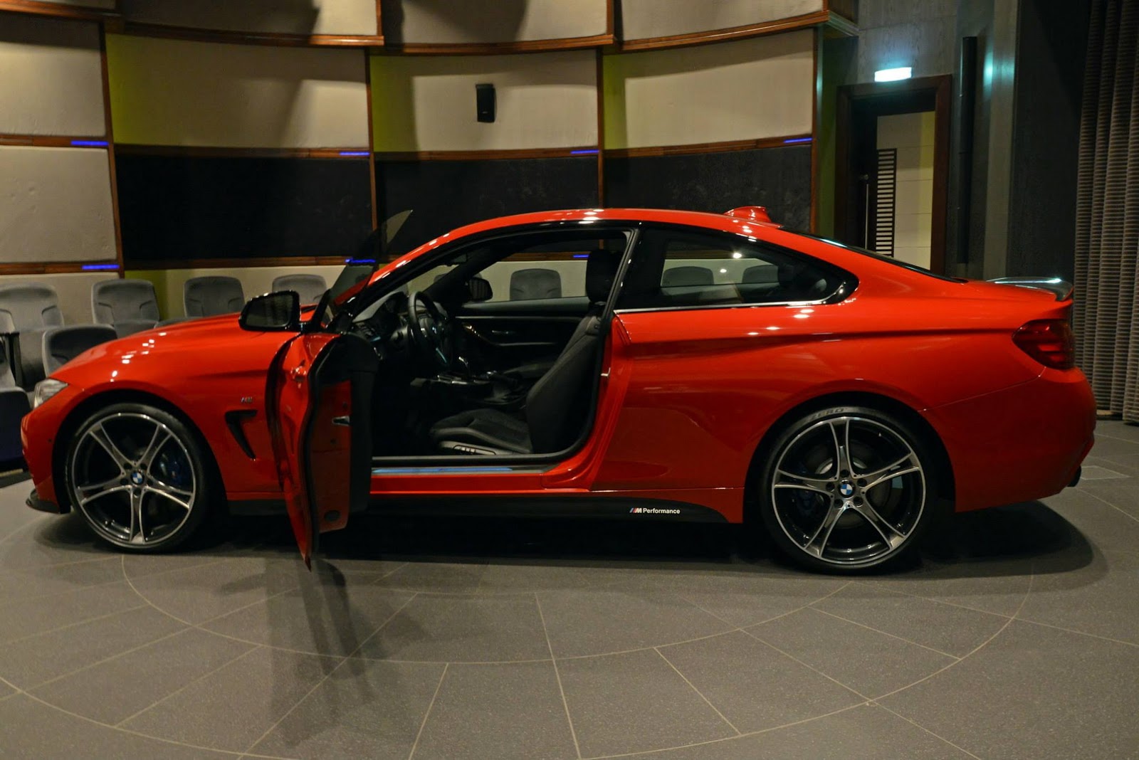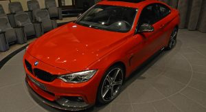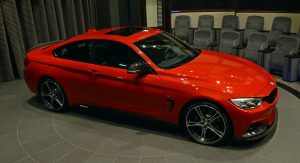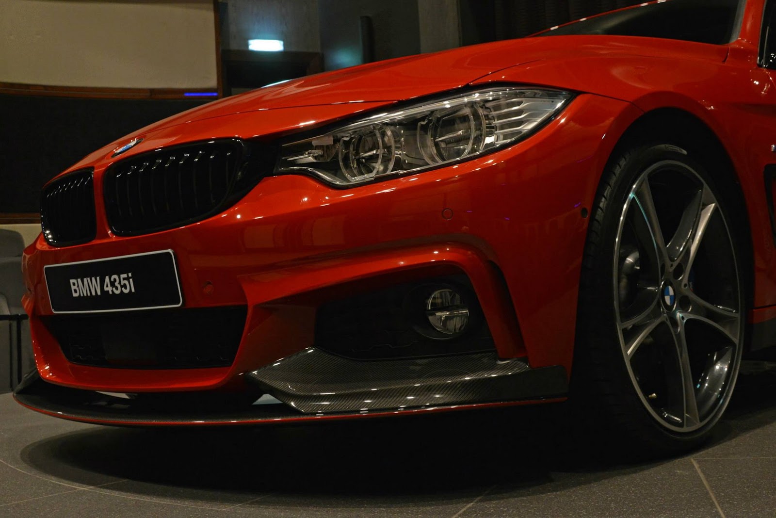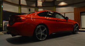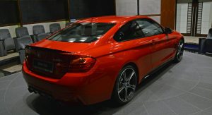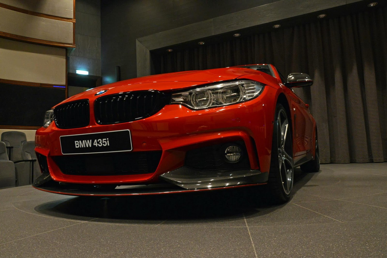 This gorgeous red 435i Coupe was on display in Abu Dhabi at a BMW dealership, wearing M-Sport duds and obviously lacking a very important badge on the truck lid.