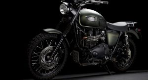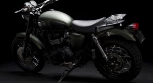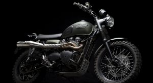 First of all, it’s a totally bad-ass looking Scrambler, based on the Bonneville model. Second, it was ridden by actor Chris Pratt – who is a funny, cool dude. And third, the bike starred in Jurassic World, the movie.