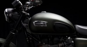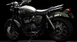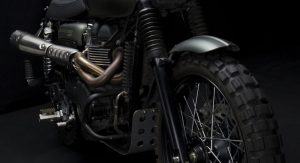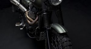 Inspired by the TR6C Trophy Special, the bike comes equipped with a twin cylinder 865cc, a single seat and rack, an Arrow Racing high level exhaust, custom footpegs and handlebars and is finished in Matte Green. Furthermore, it comes with a certificate of authenticity and is offered in the same condition it left the filming location.