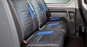 Inside, the Renault Trafic Formula Edition gets leather sport seats with blue and red stitching and accents in the same colors, as well as “Formula Edition” lettering on the front seats.
