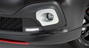 On the outside, the van gets red and blue stripes and decals, a more aggressive front fascia with white trim around the fog lights and a red painted bumper lip, as well as chrome bars on the grille. The van rides on black painted 17-inch 10-spoke alloy wheels.