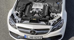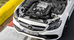 A wider track is the first step in keeping the C63 on the road, the limited-slip differential helps too. It’s a mechanical setup on the C63, but the S gains and electronic diff Mercedes says has faster reflexes and works better with the stability control system. Available “Performance Seats” are supposed to keep you in place better than the standard sport seats if you plan to be going sideways in the C63 as much as going forward.