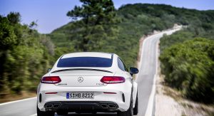 Just as the 2017 Mercedes-Benz C-Class Coupe was everything you thought it might be if you’ve looked around a Mercedes showroom these days, the hotter Mercedes-AMG C63 Coupe instantly captures what you’d imagine a small Mercedes two-door with a bonkers engine would be. Yet Mercedes is still banking on the “distinctive” tag.
