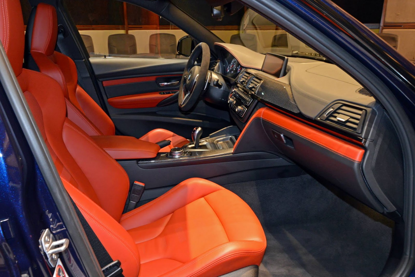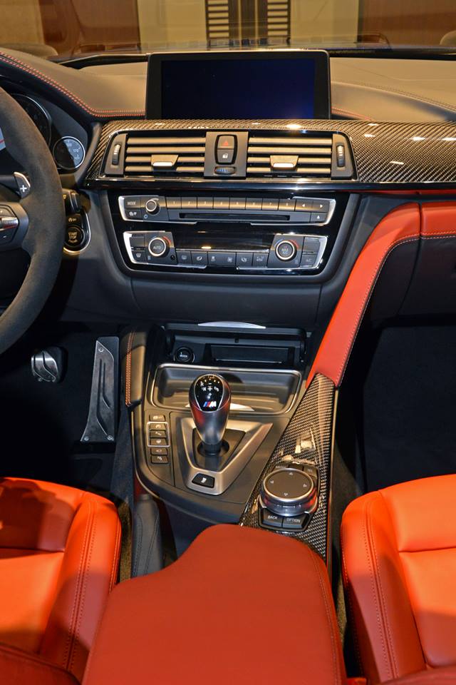 Inside, there’s even more “drama” with awesome orange leather seats and inserts throughout the cabin (Sakhir Orange), carbon fiber elements and of course the Alcantara-wrapped steering wheel, which not only looks but also is seriously grippy.