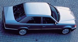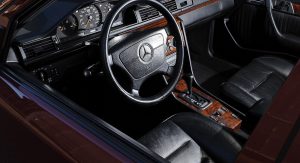 Yes, this rather modest-looking top-of-the-range W124 model has a very interesting background. At first glance, you’d be hard pressed to differentiate it from other models in the 124 series, having only a slightly lower body and a modified front apron with inset fog lamps to go on visually.