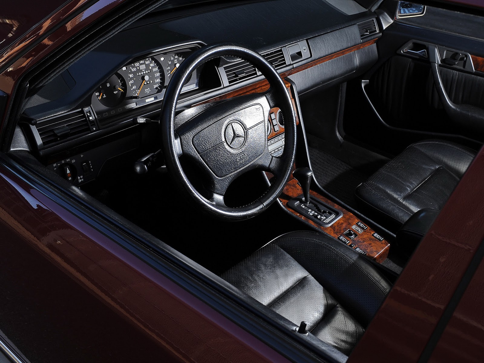 Yes, this rather modest-looking top-of-the-range W124 model has a very interesting background. At first glance, you’d be hard pressed to differentiate it from other models in the 124 series, having only a slightly lower body and a modified front apron with inset fog lamps to go on visually.