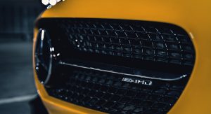 Last year in Paris, Mercedes brought along two AMG GTs, a silver one and a yellow one just like this one right here, which in a way is kind of its trademark color now – called AMG Solarbeam Yellow Metallic, a £10,695 optional extra in the UK, and $9,900 in the US.