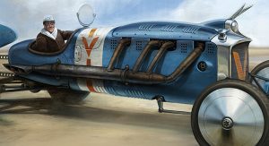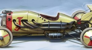 In his own words, “after the failed assassination of Archduke Ferdinand, WWI is dodged, and an era of great economic expansion begins. Automobile racing is at the forefront of technological development and some of the discoveries that put planes into the air are being used to stick cars to the ground from 1911-1919. Formula is open, so experiments are wild, free, and dangerous…”